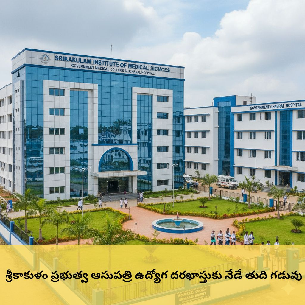 ప్రభుత్వ వైద్య కళాశాల మరియు ప్రభుత్వ సాధారణ ఆసుపత్రి లో వివిధ ఔట్సోర్సింగ్ పోస్టుల భర్తీకి దరఖాస్తులు స్వీకరించడానికి నేడే (అక్టోబర్ 11, 2025) చివరి రోజు.