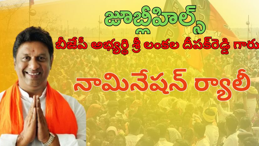 జూబ్లీహిల్స్ ఉపఎన్నిక నేపథ్యంలో బీజేపీ అభ్యర్థి దీపక్రెడ్డి నేడు నామినేషన్ దాఖలు చేయనున్నారు. ఉదయం 9 గంటలకు యూసుఫ్గూడ నుంచి భారీ ర్యాలీగా బయలుదేరి, నామినేషన్ కేంద్రానికి చేరుకోనున్నారు.