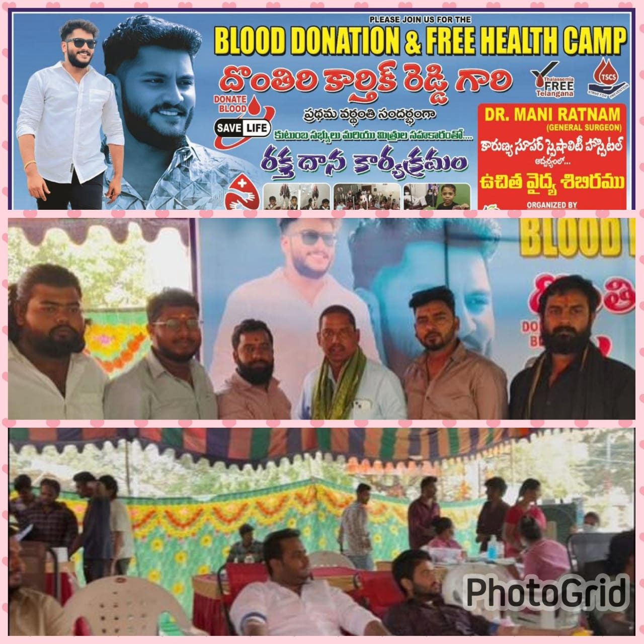 దొంతిరి కార్తీక్ రెడ్డి ప్రధమ వర్ధంతి సందర్భంగా రక్తదాన శిబిరం.|