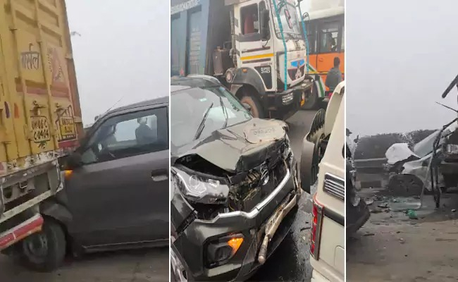 *నోయిడా ఎక్స్ప్రెస్వేపై పొగమంచు.. పదుల సంఖ్యలో వాహనాలు ఢీ*
