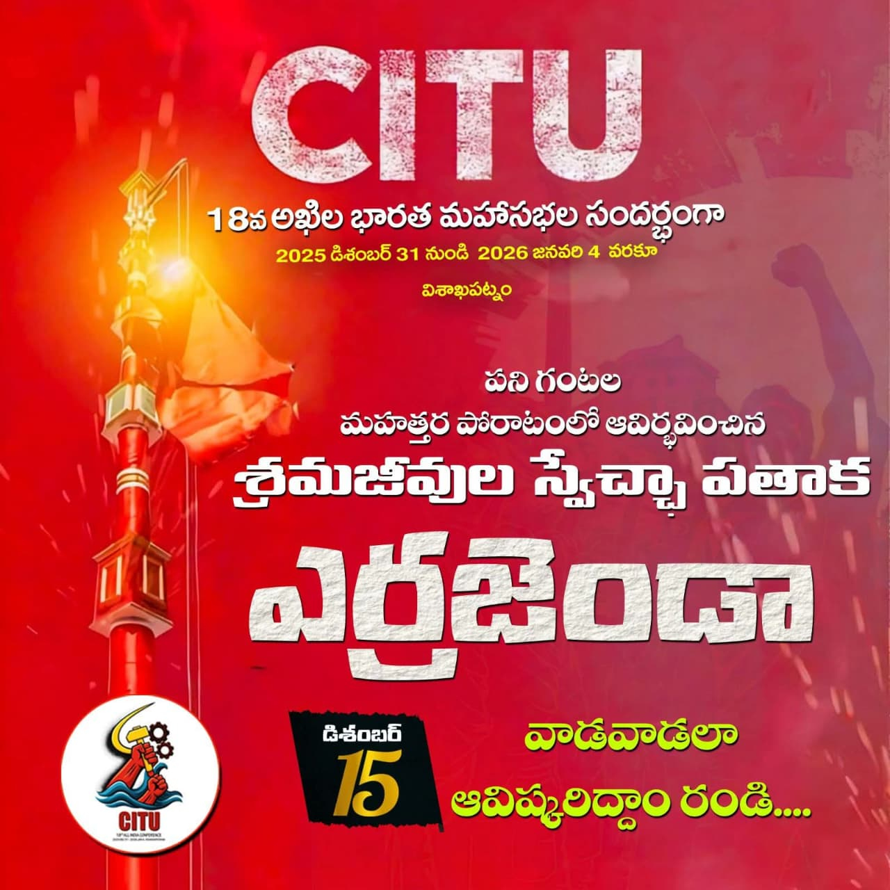 *డిసెంబర్ 31 నుండి జనవరి 4 వరకు విశాఖపట్నంలో సిఐటియు అఖిల భారత 18వ మహాసభలు*