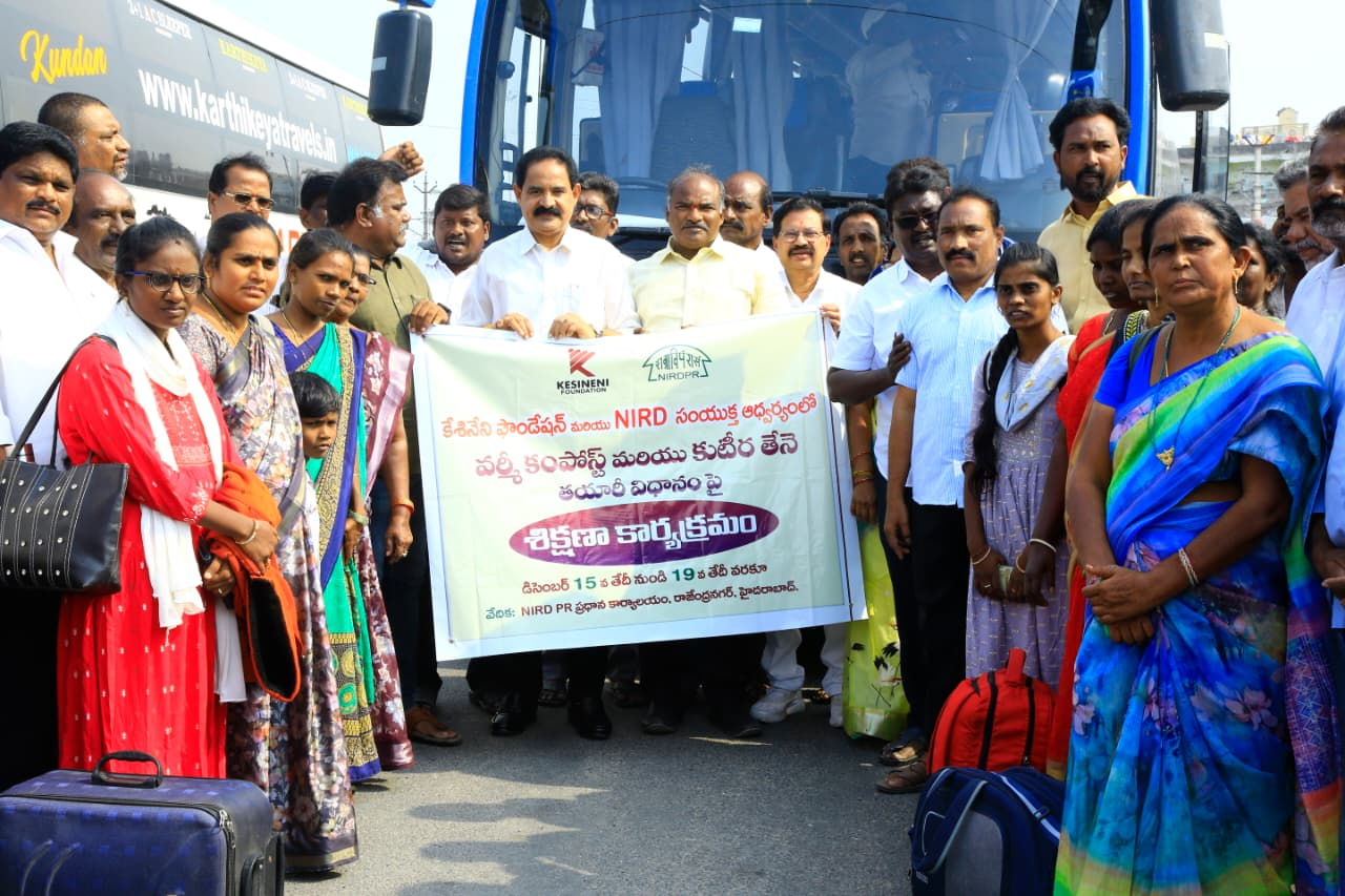 ఎన్.ఐ.ఆర్.డి లో ఐదు రోజుల శిక్ష‌ణ తీసుకునేందుకు 3వ కింద వెళ్లిన ఈ 45 మంది ఎస్.హెచ్.జి మ‌హిళ‌ల‌కు నేచుర‌ల్ ఫార్మింగ్, వ‌ర్మీ కంపోస్ట్, తేనే తయారీ పై శిక్ష‌ణ ఇస్తారు. తిరువూరు నియోజ‌క‌వ‌ర్గం నుంచి ఎ.కొండూరు మండ‌లం, గంప‌ల‌గూడెం మండ‌లం , మైల‌వ‌రం నియోజ‌క‌వ‌ర్గం నుంచి జి.కొండూరు మండ‌లం, నందిగామ నియోజ‌క‌వ‌ర్గం కంచిక‌చ‌ర్ల మండ‌లం, వీరుల‌పాడు మండ‌లం, నందిగామ‌, జ‌గ్గ‌య్య‌పేట నియోజ‌క‌వ‌ర్గం నుంచి పెనుగ్రంచిప్రోలు మండ‌లం, వ‌త్స‌వాయి మండ‌లం, జ‌గ్గ‌య్య‌పేట రూర‌ల్ ప్రాంతాల‌కు చెందిన ఎస్.హెచ్.జి మ‌హిళ‌లు నైపుణ్యాభివృద్ది శిక్ష‌ణ‌కు వెళ్ల‌టం జ‌రిగింది.