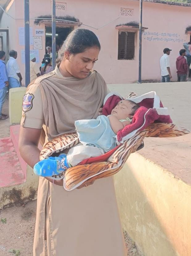 *పసిబిడ్డ ను లాలిస్తున్న కానిస్టేబుల్ అనిత...*