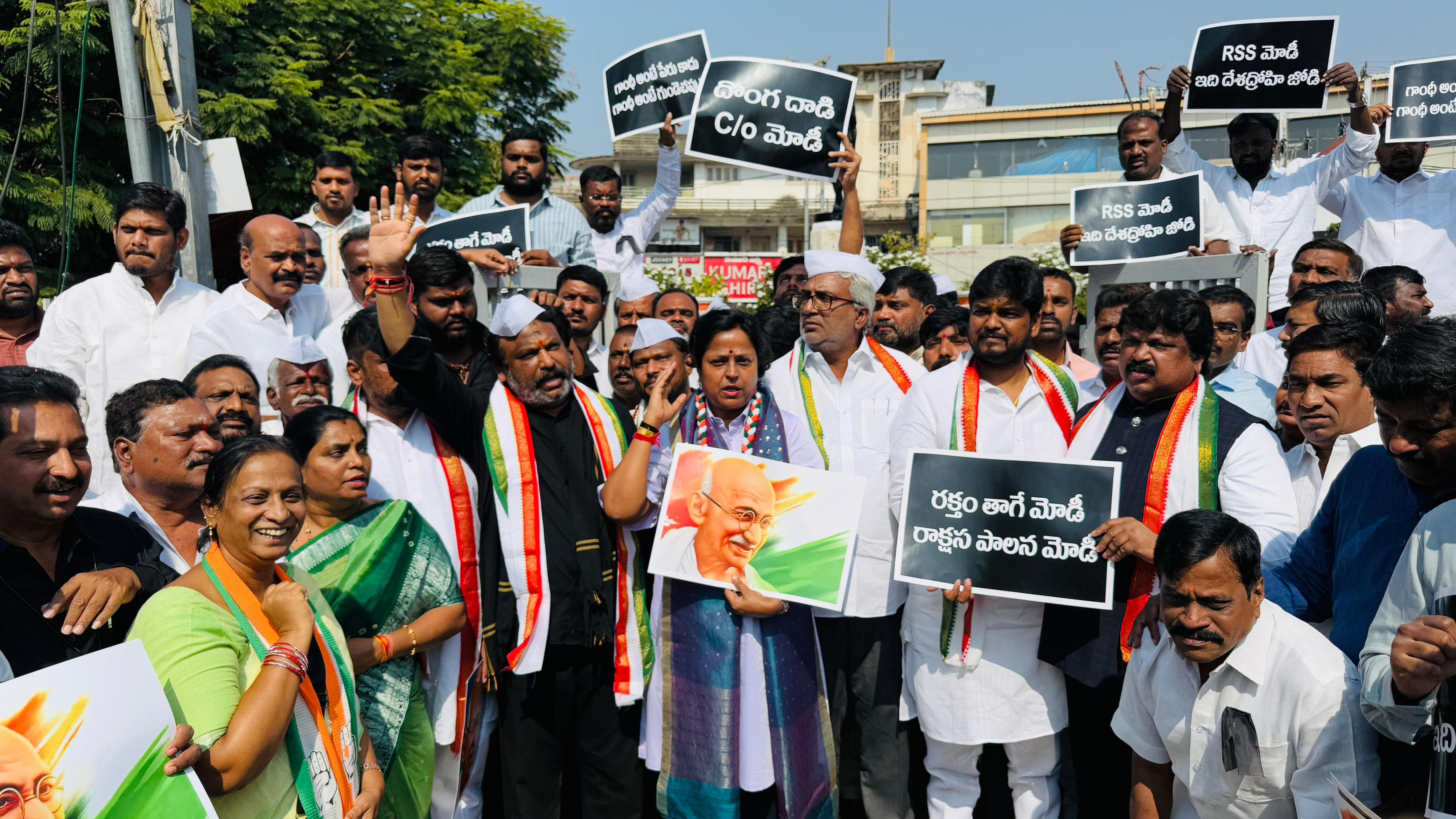 ఈ ధర్నా లో కంటోన్మెంట్ ఎమ్మెల్యే శ్రీగణేష్ పాల్గొని, కేంద్రంలోని బి జే పి ప్రభుత్వం జాతిపిత మహాత్మాగాంధీ గారి పట్ల చూపిస్తున్న వివక్షను, ద్వేషాన్ని ఖండించారు.