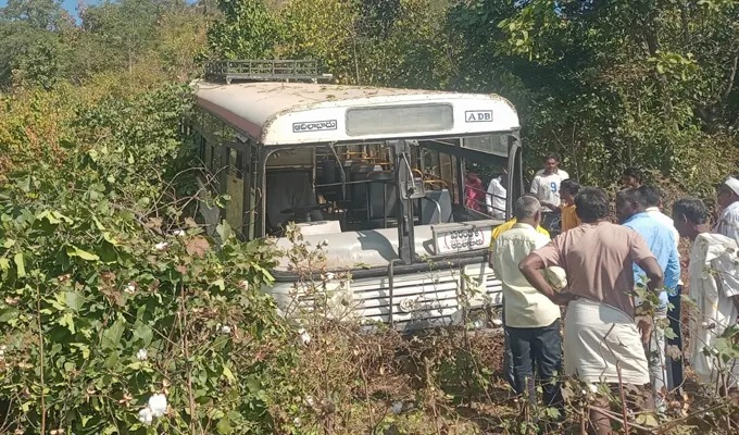 కెరమెరి: కుమురంభీం జిల్లాలో ఆర్టీసీ బస్సు ప్రమాదానికి గురయ్యింది. ఆదిలాబాద్ డిపోనకు చెందిన బస్సు.. కెరమెరి మండలం పరందోలి నుంచి ఆదిలాబాద్కు బయల్దేరింది. మార్గమధ్యంలో పరందోలి ఘాట్ వద్ద అదుపుతప్పి పక్కనే ఉన్న పత్తి చేనులోకి దూసుకెళ్లింది. ఈ ఘటనలో బస్సులో ఉన్న 30 మంది ప్రయాణికులకు గాయాలయ్యాయి. క్షతగాత్రులను ఆదిలాబాద్ రిమ్స్కు తరలించారు