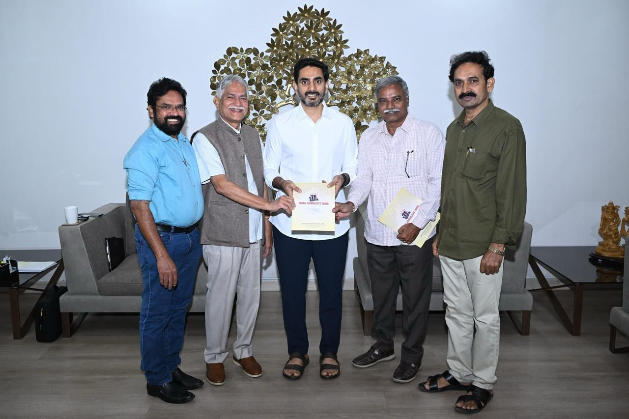 ఆంధ్రప్రదేశ్ యూనియన్ ఆఫ్ వర్కింగ్ జర్నలిస్ట్స్ (ఏపీయూడబ్ల్యూజే) ఆధ్వర్యంలో జనవరిలో నిర్వహించే సెమినార్కు హాజరవుతారని రాష్ట్ర విద్యాశాఖ మంత్రి నారా లోకేష్ హామీ ఇచ్చారు. శనివారం ఉదయం తాడేపల్లిలోని క్యాంపు కార్యాలయంలో ఐ జె యూ జాతీయ అధ్యక్షులు, తెలంగాణ మీడియా అకాడమీ చైర్మన్ కామ్రేడ్ శ్రీనివాస రెడ్డి ఆధ్వర్యంలో ఏపీడబ్ల్యూజే బృందం మంత్రి లోకేష్ ని కలిసింది. ఈ సందర్భంగా వివిధ అంశాలు మంత్రి లోకేష్ తో చర్చించారు. "సోషల్ మీడియా.. ప్రస్తుత ధోరణులు" అనే అంశంపై ఏపీయూడబ్ల్యూజే ఆధ్వర్యంలో జనవరిలో రాష్ట్రస్థాయి సెమినార్ నిర్వహించాలని నిర్ణయించింది. దీనికి ముఖ్యఅతిథిగా మంత్రి నారా లోకేష్ ను ఆహ్వానించింది. దీనికి మంత్రి లోకేష్ అంగీకారం తెలిపారు. సోషల్ మీడియా లో పెరిగిపోతున్న విపరీత ధోరణులపై పై చర్చ జరగాల్సిన అవసరం ఉందని మంత్రి లోకేష్ అభిప్రాయపడ్డారు ఏపీయూడబ్ల్యూజే ఆధ్వర్యంలో చొరవ తీసుకొని ఇలాంటి సెమినార్ నిర్వహించడం అభినందనీయమని ఆయన పేర్కొన్నారు ముఖ్యంగా జర్నలిస్టులకు సోషల్ మీడియాలో జరుగుతున్న విపరీతధోరణులపై అవగాహన కల్పించాల్సిన బాధ్యత యూనియన్ల పైన ఉందని ఆయన అభిప్రాయపడ్డారు. జర్నలిస్టుల అభివృద్ధి, సంక్షేమం, హక్కుల సాధన కోసం ఏపీయూడబ్ల్యూజే చేస్తున్న కృషిని మంత్రి లోకేష్ ప్రశంసించారు. దీనితోపాటు జర్నలిస్టులకు సంబంధించిన పలు అంశాలను ఆయన దృష్టికి తీసుకెళ్లారు. అన్నిటిని సానుకూలంగా పరిశీలించి పరిష్కరిస్తామని ఆయన హామీ ఇచ్చారు . 2026 ఫిబ్రవరిలో జరిగే ఇండియన్ జర్నలిస్ట్ యూనియన్ (ఐజేయు) ప్లేనరీ సమావేశాలు విజయవాడలో జరగబోతున్న విషయాన్ని లోకేష్ దగ్గర ఐ జె యూ అధ్యక్షులు శ్రీనివాస్ రెడ్డి ప్రస్తావించారు. సమావేశాలు విజయవంతం కావాలని, ప్రభుత్వం తరఫున సంపూర్ణ సహాయ సహకారాలు అందిస్తామని ఆయన హామీ ఇచ్చారు. ఈ కార్యక్రమంలో ఏపీయూడబ్ల్యూజే అధ్యక్షులు ఐ వి సుబ్బారావు, ప్రధాన కార్యదర్శి కంచల జయరాజ్, ఉపాధ్యాక్షులు చావా రవి పాల్గొన్నారు.