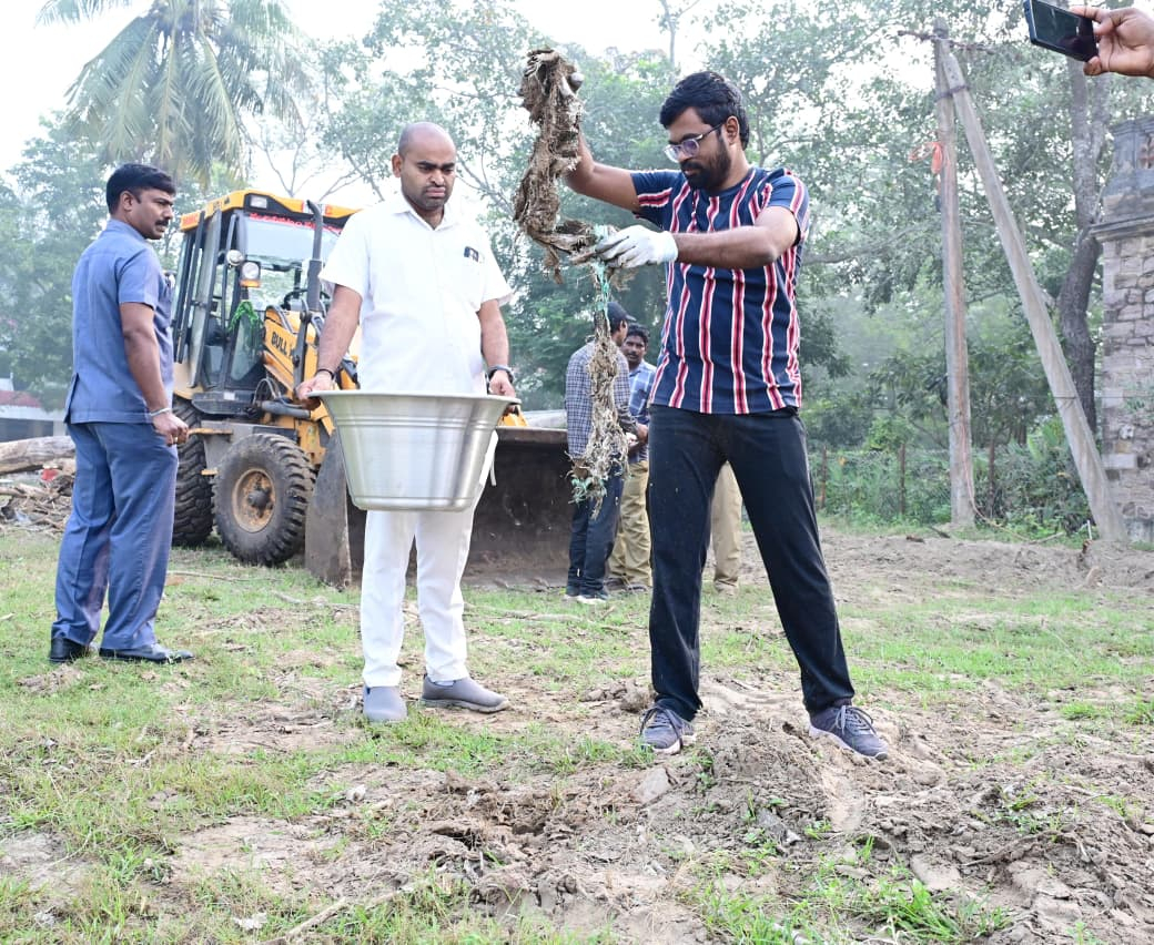 కలెక్టరేట్లో వివిధ ప్రభుత్వ శాఖల జిల్లా అధికారులు కార్యాలయపు సిబ్బందితో కలిసి జిల్లా కలెక్టర్ పిచ్చి మొక్కలు, చెత్తాచెదారాలు, ఎండిపోయిన ఆకులను, విరిగిపోయి పడిపోయిన చెట్టు కొమ్మలను తొలగించి మునిసిపల్ ట్రాక్టర్లకు ఎక్కించారు.