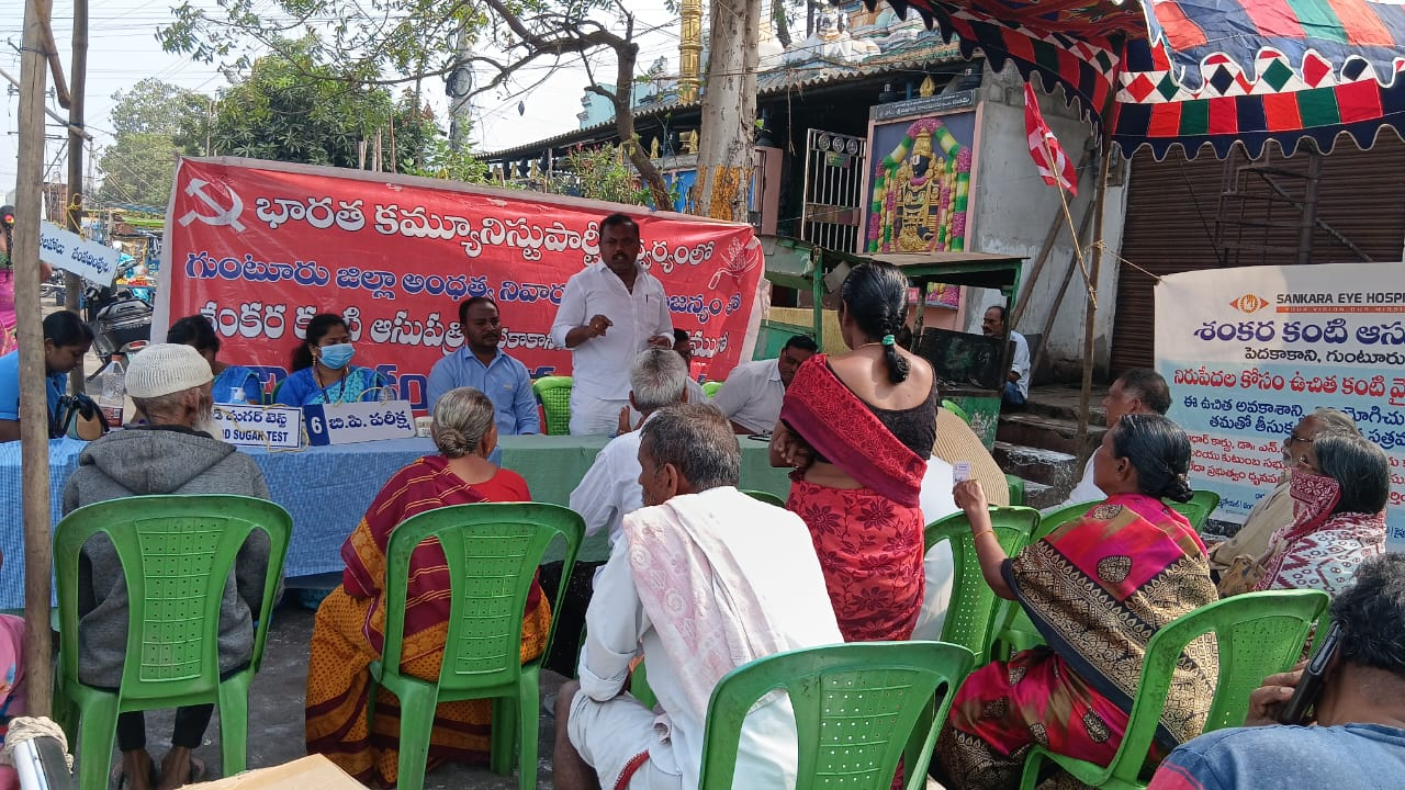 భారత కమ్యూనిస్టు పార్టీ 17వ డివిజన్ శాఖ కార్యదర్శి చినపోతుల విజయ్ కుమార్ ఆధ్వర్యంలో చాకలికుంటలోని కమ్యూనిస్టు బొమ్మలు సెంటర్లో శంకర కంటి వైద్యశాల వారి సహకారంతో అంధత్వ నివారణ సంస్థ గుంటూరు జిల్లా వారి సౌజన్యంతో ఉచిత కంటి వైద్య శిబిరం నిర్వహించడం జరిగింది.