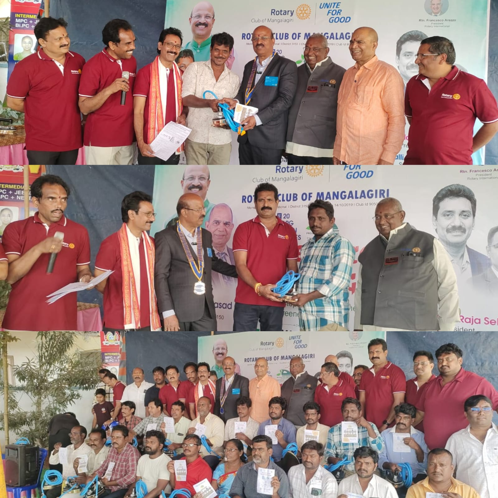 రోటరీ డిస్ట్రిక్ట్–3150 గవర్నర్ ఎస్.వి. రామ్ ప్రసాద్ అధికారిక పర్యటనలో భాగంగా, మంగళగిరి రోటరీ క్లబ్ ఆధ్వర్యంలో పేద ఇస్త్రీ వృత్తిదారులకు ఉచితంగా ఎల్పీజీ ఆధారిత ఇస్త్రీ పెట్టెలను పంపిణీ చేశారు. ఈ కార్యక్రమం ఆదివారం గణపతి నగర్లోని వీజే జూనియర్ కాలేజీ ఆవరణలో గవర్నర్ ఎస్.వి. రామ్ ప్రసాద్ ఆధ్వర్యంలో జరిగింది.ఈ సందర్భంగా గవర్నర్ ఎస్.వి. రామ్ ప్రసాద్ మాట్లాడుతూ, ఎల్పీజీ ఇస్త్రీ పెట్టెల వినియోగంతో ఇస్త్రీ వృత్తి చేసుకునే వారికి నెలకు సుమారు రూ.2,000 వరకు ఇంధన వ్యయం ఆదా అవుతుందని తెలిపారు. బొగ్గు వినియోగం తగ్గడంతో బట్టలపై మసి అంటకుండా నాణ్యమైన సేవలు అందించగలుగుతారని, తద్వారా వారి వృత్తి నాణ్యత పెరిగి ఆదాయం మెరుగయ్యే అవకాశాలు ఉన్నాయని పేర్కొన్నారు. అలాగే ఎల్పీజీ ఇస్త్రీ పెట్టెల వాడకం వల్ల పర్యావరణ కాలుష్యం నియంత్రణకు కూడా దోహదం చేస్తుందని వివరించారు.