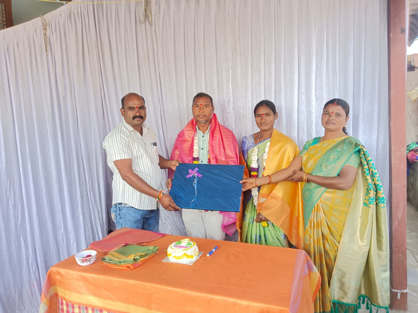 మహబూబాబాద్::కొత్తగూడ, డిసెంబర్ 21(భారత్ అవాజ్):గ్రామ పంచాయతీ మూడో విడత ఎన్నికల్లో ఘన విజయం సాధించిన కొత్తగూడ మండలం తాటివారి వేంపల్లి గ్రామపంచాయతీ సర్పంచ్ గా గెలుపొందిన తాటి వసంత రమణయ్య, వార్డు సభ్యులు ఇర్ప వినోద్ కుమార్,జోగ వెంకటలక్ష్మి,రాసురి.సుగుణమ్మ లను టియుడబ్ల్యూ ఐజేయు జిల్లా కార్యవర్గ సభ్యులు,సీనియర్ జర్నలిస్టు,అంబేద్కర్ నేషనల్ ఫెలోషిప్ అవార్డు గ్రహీత గొడుగు శ్రీనివాస్ గౌడ్ దంపతులు మర్యాదపూర్వకంగా కలసి శాలువాతో సత్కరించి, పుష్పాగుచ్చం,ఫోటో ఫ్రేమ్ ను బహుకరించి, కేక్ కట్ చేసి,స్వీట్లు పంపిణీ చేశారు.అనంతరం సర్పంచ్, వార్డు సభ్యులకు హృదయపూర్వక హార్దిక శుభాకాంక్షలు తెలిపారు.ఈ సందర్భంగా ఆయన మాట్లాడుతూ నిత్యం ప్రజల్లో ఉంటూ, ప్రజల ఆధార అభిమానాలను పొంది వేంపల్లి గ్రామం సర్పంచ్ గా ఘన విజయం సాధించడం గర్వించదగ్గ విషయమని అన్నారు.ప్రజా ఆశీర్వాదంతో గ్రామాన్ని అన్ని విధాలా అభివృద్ధికి కృషి చేయాలని కోరారు.భవిష్యత్ లో మరిన్ని పదవులు అధిరోహించాలని ఆయన ఆకాంక్షించారు.ఈ కార్యక్రమంలో సోలం వెంకన్న,బీరం తిరుమలేష్,తాటి కోమ్మయ్య,జోగ సమయ్య,ఇర్ప సంపత్,జోగ పోతయ్య,జోగ నందిని,సునిత, రమాదేవి,చంద్రకళ, వాసం సురేందర్,వాసం సింహాద్రి,నిర్మలా, నర్సమ్మ,ఇర్ప నారాయణ,జోగ నర్సయ్య,వజ్జ యాకలక్ష్మి,జోగ వీరలక్ష్మీ,తాటి సుమలత,తాటి శృతి, బుచ్చమ్మ,వాసం పాపయ్య తదితరులు పాల్గొన్నారు.