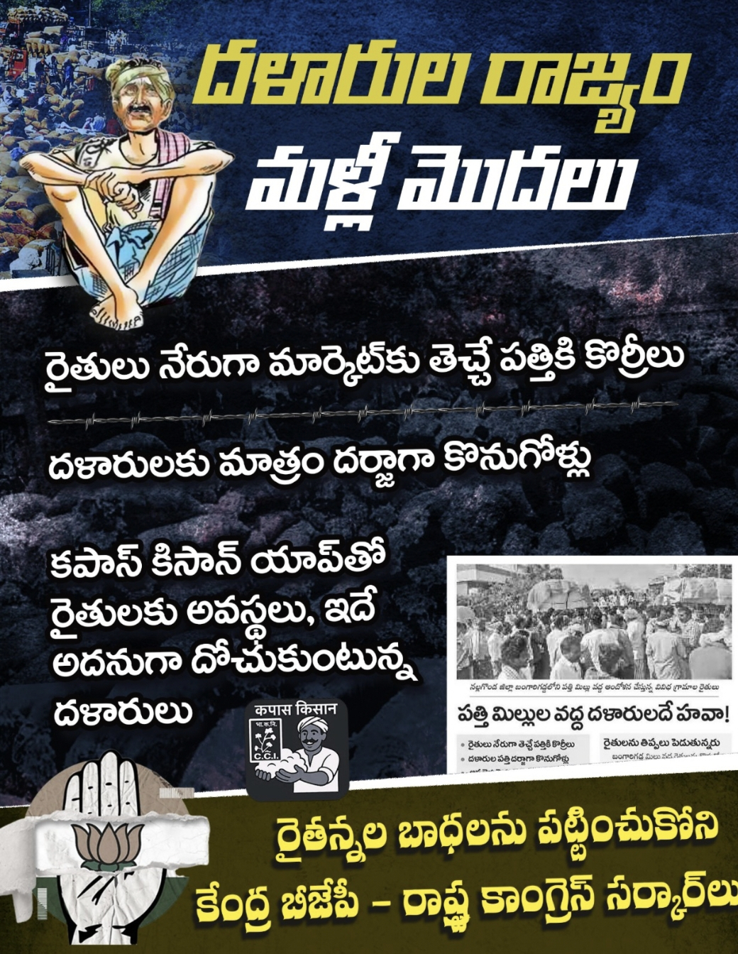 పత్తి కొనుగోళ్లలో కేంద్ర బీజేపీ - రాష్ట్ర కాంగ్రెస్ సర్కార్ ల నిర్లక్ష్య వైఖరి,