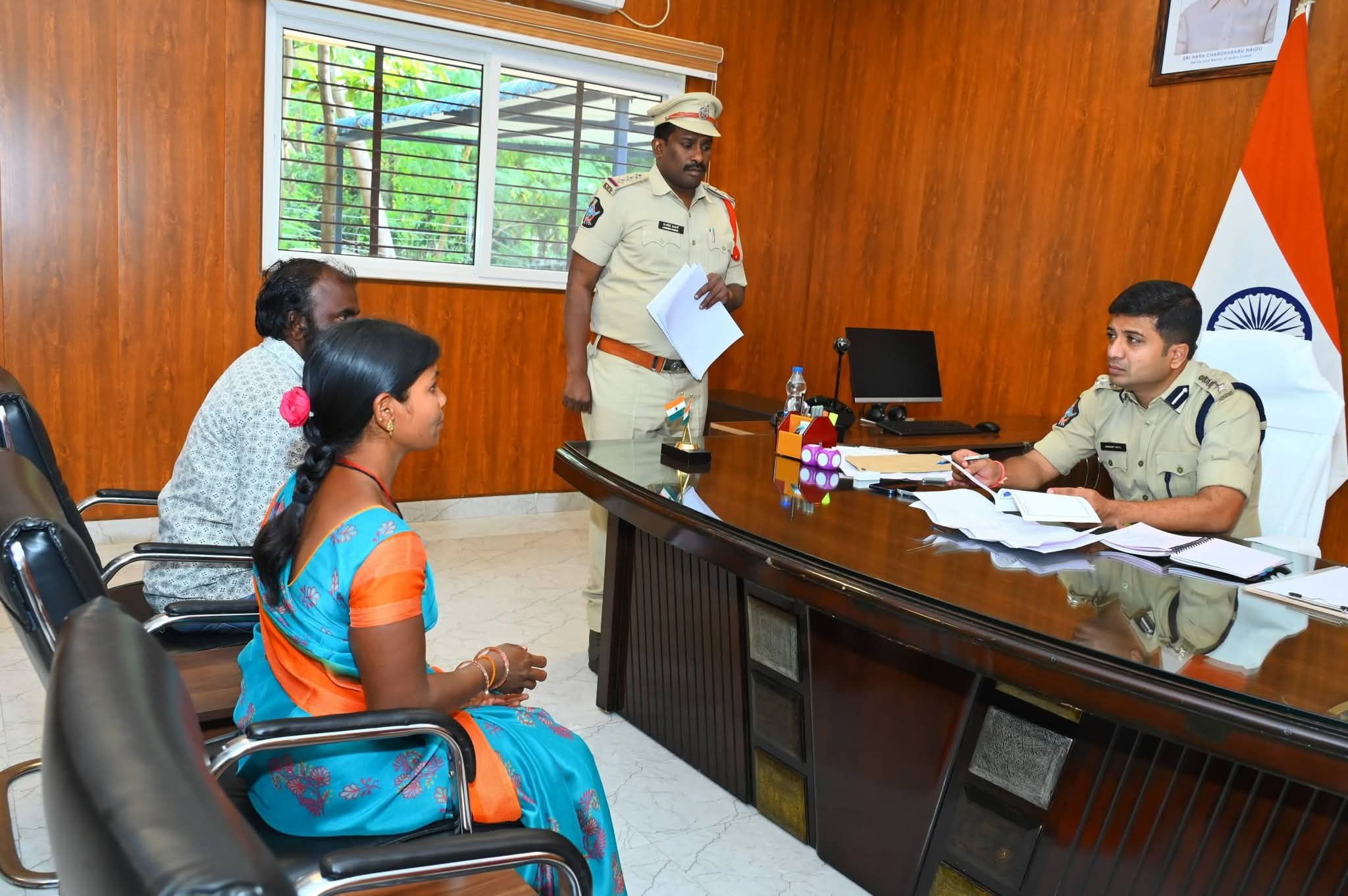 జిల్లాలోని వివిధ ప్రాంతాల నుండి ప్రజా ఫిర్యాదుల పరిష్కార వేదిక కార్యక్రమం కు వచ్చిన ప్రజల సమస్యల వినతులను స్వీకరించి ఫిర్యాది దారులతో జిల్లా ఎస్పీ గారు మాట్లాడి వారి యొక్క సమస్యలను అడిగి తెలుసుకున్నారు.