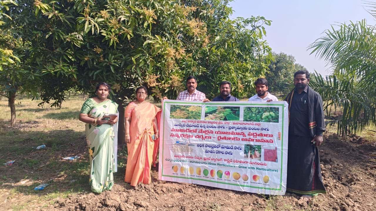 మహబూబాబాద్,డిసెంబర్ 22 (భారత్ అవాజ్): మహబూబాబాద్ మండలం లోని పలు గ్రామాలను జిల్లా ఉద్యాన, పట్టుపరిశ్రమ, వ్యవసాయ శాఖ ఆధ్వర్యంలో శాస్త్రవేత్తలు,అధికారుల బృందం సందర్శించి రైతులకు పూత దశలో మామిడి తోటలలో తీసుకోవలసిన సస్య రక్షణ చర్యలు మరియు ఆయిల్ పామ్ సాగు అంతర పంటల సాగు పై అవగాహన కల్పించారు. ఈ సందర్భంగా జిల్లా ఉద్యాన, పట్టు పరిశ్రమ అధికారి జినుగు మరియన్న , మొగ్గలను ఉత్తేజపరచి తొందరగా పూత తెప్పించడానికి డిసెంబర్ 15-20ల మధ్య నీటి వసతి ఉన్న తోటల్లో పాదుల్లో తేలిక పాటి తడి ఇవ్వటం లేదా లీటరు నీటికి పొటాషియం నైట్రేట్ 10 గ్రా, + యూరియా 5 గ్రా. చొప్పున కలిపి చెట్టుపై పిచికారి చేయడం వల్ల పూమొగ్గలు దాదాపు ఒకేసారి చిగురించి పూత త్వరగా వచ్చేలా చేయవచ్చునని అన్నారు. పచ్చిపూత దశలో అంటే పూత కాడలు బయటకు వచ్చే పూలు వికసించకుండా ఇంకా మొగ్గ దశలో ఉన్నప్పుడు. లీటరు నీటికి 0.3 మి.లీ. ఇమిడాక్లోప్రిడ్ కలిపి పిచికారి చేయడం ద్వారా తేనె మంచు పురుగులను నివారించుకోవచ్చునని అన్నారు.పూత చుట్టు పురుగు పూతను గూడుగా ఏర్పరచుకొని, పూతను తిని విపరీతంగా నష్టపరుస్తుంది. ఇది ఆశించిన పూల గుత్తుల్లో పిందెలు ఏర్పడవు. ఈ పురుగు నివారణకు క్లోరిపైరిఫాస్ 2.5 మి.లీ. లీటరు నీటిలో కలిపి పూల గుత్తుల పై పిచికారి వేయాలన్నారు. చల్లని రాత్రులు, వెచ్చని పగటి వాతావరణంలో పూకాడలపై, పూల మీద తెల్లని పొడి లాంటి (బూడిద తెగులు) బూజు ఏర్పడుతుంది. దీని నివారణకు పూమొగ్గలు కనిపించిన దశలో లీటరు నీటికి 3 గ్రా. నీటిలో కరిగే గంధకం కలిపి పిచికారి చేయాలన్నారు. పూత దశలో బూడిద తెగులు కనిపిస్తే లీటరు నీటికి హెక్సాకొనజోల్ 2 మి.లీ. లేదా ప్రొపికొనజోల్ 1 మి.లీ. లేదా డైనోకాప్ 1 మి.లీ. చొప్పున కలిపి పూత కాడలు తడిచేలా పిచికారి చేయాలన్నారు. పూత మాడు తెగులు నివారణకు మొగ్గ బయటకు వచ్చే దశలో 3 గ్రా. కాపర్ ఆక్సీ క్లోరైడ్, పచ్చిపూత మీద 1 గ్రా. కార్బండాజిమ్ లేదా 1 గ్రా. థయోఫినైట్ మిథైల్ ను లీటరు నీటికి చొప్పున కలిపి పిచికారి చేయాలన్నారు. భారతీయ ఉద్యాన పరిశోధన స్థానం, బెంగుళూరు వారు రూపొందించన ఆర్కా మ్యాంగో స్పెషల్ ను పిచికారి చేయడం వలన పూత కాతా మంచిగా ఉంటుందని బృందం తెలిపిందన్నారు. మామిడి తోటలలో పూత సమయంలోనే కాకుండా వానాకాలం, యాసంగీ, వేసవి కాలాల్లో నెలవారీగా చేపట్టే యాజమాన్య పద్దతుల ప్రకారం, ఆధునిక పద్దతులను మామిడి రైతాంగం చేపట్టి నాణ్యమైన అధిక దిగుబడులు పొందాలని తెలిపినారు.మార్కెట్ డిమాండ్ ఉన్న పంటలు సాగు చేయాలని, నిత్యం రోగనిరోధక శక్తికి, ఆరోగ్యంగా ఉండటానికి పోషకాలు అందించే పండ్ల తోటలు అయిన జామ, నిమ్మ, అరటి, బొప్పాయి, సీతాఫలం, పనస, నేరేడు, అవకాడో, ఫ్యాషన్ ఫ్రూట్, కూరగాయలు, ఆకు కూరలు, మునగ, వెదురు మొదలైనవి సాగు చేయాలని 
