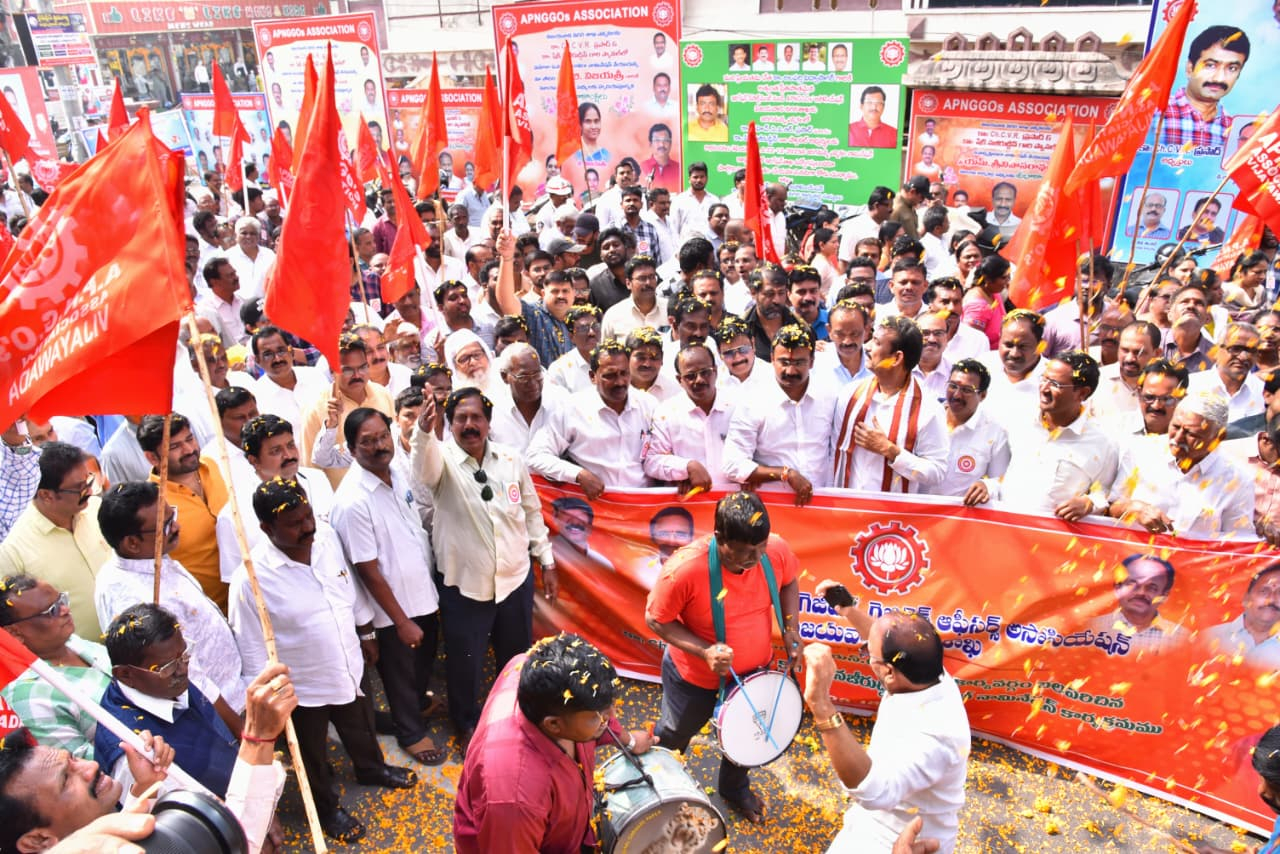 ఏపీ ఎన్‌జీజీవో అసోసియేష‌న్ విజ‌య‌వాడ న‌గ‌ర‌శాఖ నూత‌న కార్య‌వ‌ర్గ ఎన్నిక‌లు సోమ‌వారం న‌గ‌రంలోని గాంధీన‌గ‌ర్ ఏపీ ఎన్‌జీవో హోంలో జ‌రిగాయి. ఈ సంద‌ర్భంగా ఏర్పాటుచేసిన ర్యాలీకి భారీగా ఉద్యోగుల త‌ర‌లివ‌చ్చారు. ర్యాలీలో పాల్గొన్న ఏపీ ఎన్‌జీజీవో రాష్ట్ర అధ్య‌క్షులు విద్యాసాగ‌ర్ మాట్లాడుతూ 75 ఏళ్ల సుదీర్ఘ చరిత్ర క‌లిగిన ఏపీ ఎన్‌జీజీవో అసోసియేష‌న్ ఎన్నో చారిత్రాత్మాక ఘ‌ట్టాల‌కు సాక్ష్యంగా నిలిచింద‌న్నారు. నేడు ఉద్యోగులు పొందుతున్న ప్ర‌తి సౌక‌ర్యం సాధించ‌డం వెనుక కేవ‌లం ఏపీ ఎన్‌జీజీవో అవిర‌ళ కృషి మాత్ర‌మే కార‌ణ‌మ‌న్నారు. ఉద్యోగుల స‌మ‌స్య‌ల ప‌రిష్కారం కోసం సంఘం ఎన్నో అలుపెర‌గ‌ని పోరాటాలు చేయ‌డం జ‌రిగింద‌న్నారు. ఉమ్మ‌డి రాష్ట్రంలో సైతం ఏపీ ఎన్‌జీజీవో సంఘం చేప‌ట్టిన ప్ర‌తి కార్య‌క్ర‌మం, డిమాండ్ల సాధ‌న పోరాటాల‌కు విజ‌య‌వాడ నాందిగా నిలిచి.. విజ‌యాల‌ను చ‌విచూసింద‌న్నారు. అలాంటి ఘ‌న చరిత్ర క‌లిగిన విజ‌య‌వాడ న‌గ‌ర‌శాఖ పాత్ర ఎంతో కీల‌క‌మ‌న్నారు. న‌గ‌ర‌శాఖ‌లో సేవ‌లందించిన ఎంతోమంది అగ్ర‌నాయ‌కులుగా ఎదిగారని.. ఇందుకు కార‌ణం వారు ఉద్యోగుల‌కు అందించిన సేవ‌ల్లో అంకిత‌భావం చూప‌డ‌మేన‌న్నారు. గత ప్రభుత్వంలో అపరిష్కృతంగా ఉన్న ఎన్నో సమస్యలను ప్రస్తుత ప్రభుత్వం దశల వారీగా పరిష్కరించేందుకు ముందుకు రావడం ఆశాజ‌న‌కమ‌న్నారు. గత ఆరు నెలల కాలంలో ఎన్నో సమస్యలను రాష్ట్ర సంఘం ప్రభుత్వం ముందు ఉంచిన తరుణంలో ప్రభుత్వం నుంచి సానుకూల స్పందన వచ్చిందన్నారు. ప్రధాన ఆర్థిక సమస్యలు, వైద్య సేవలలో జరుగుతున్న జాప్యాన్ని నివారించే దిశగా ప్రభుత్వం చాలా వేగంగా స్పందిస్తోందన్నారు. ఉద్యోగుల ప్ర‌ధాన డిమాండ్లు అయిన 12వ పీఆర్‌సీ ఏర్పాటు, డీఏ బ‌కాయిల విడుద‌ల‌, ఉద్యోగ ఉపాధ్యాయ పెన్ష‌న‌ర్ల‌కు మెడిక‌ల్ రియింబ‌ర్స్‌మెంట్‌, కాంట్రాక్టు ఉద్యోగుల క్ర‌మ‌బ‌ద్ధీక‌ర‌ణ‌, గ్రామ‌, వార్డు స‌చివాల‌య ఉద్యోగుల నోష‌న‌ల్ ఇంక్రిమెంట్‌, పెన్ష‌న‌ర్ల‌కు అడిష‌న‌ల్ క్వాంటం పున‌రుద్ధ‌ర‌ణ వంటి స‌మ‌స్యల పరిష్కారంపై దృష్టిపెట్టామ‌ని, త్వ‌ర‌లో ప్ర‌భుత్వం నుంచి సానుకూల స్పంద‌న వ‌స్తుంద‌ని ఆశిస్తున్న‌ట్లు విద్యాసాగ‌ర్ తెలిపారు