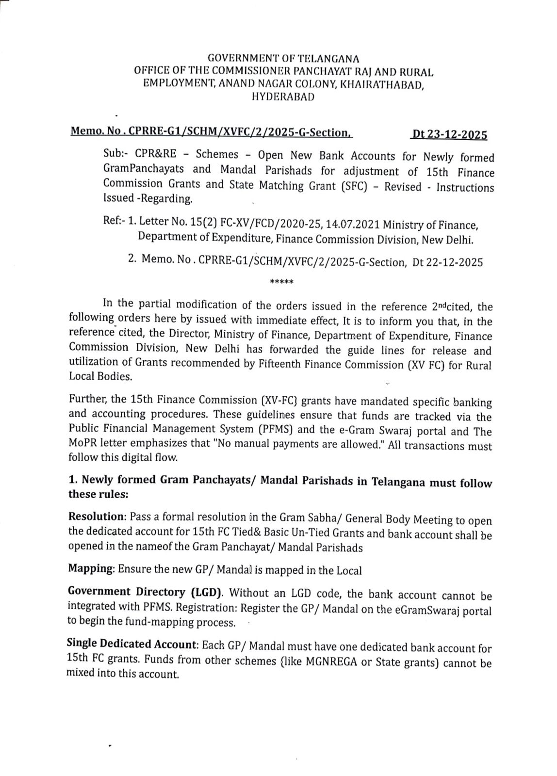 హైదరాబాద్ : ఉప సర్పంచ్ చెక్ పవర్ రద్దు అంటూ మొదట మెమో విడుదల చేసిన అధికారులు.