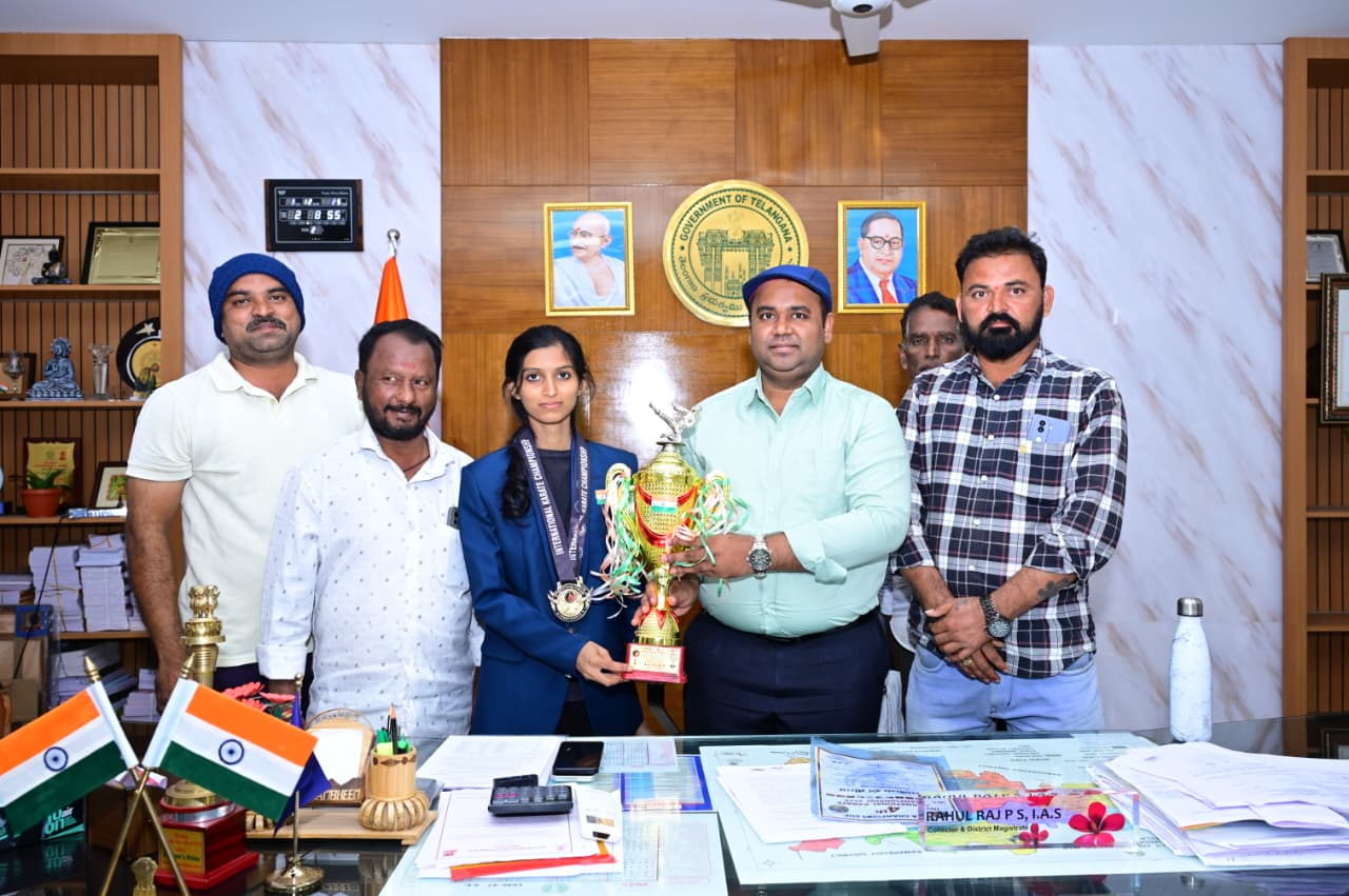 నిత్యన్యా సిరి అరుదైన గౌరవం గోల్డ్ గోల్డ్ మెడల్ ఛాంపియన్షిప్ ప్రశంసించిన జిల్లా కలెక్టర్ రాహుల్ రాజ్