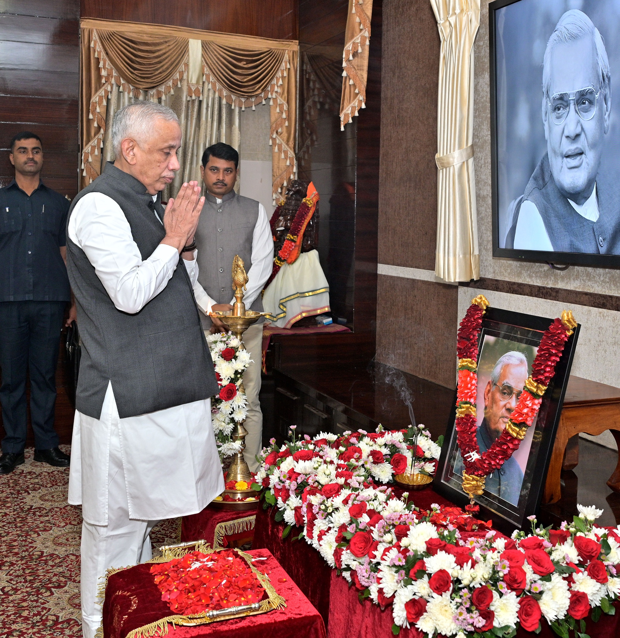 విజయవాడ, డిసెంబర్ 25: 'సుపరిపాలన దినోత్సవం' సందర్భంగా గురువారం లోక్ భవన్‌లోని దర్బార్ హాల్‌లో జరిగిన మాజీ ప్రధాన మంత్రి భారతరత్న శ్రీ అటల్ బిహారీ వాజ్‌పేయి 101వ జయంతి కార్యక్రమంలో ఆంధ్ర ప్రదేశ్ గవర్నర్ శ్రీ ఎస్. అబ్దుల్ నజీర్ పాల్గొన్నారు. శ్రీ అటల్ బిహారీ వాజ్‌పేయి చిత్రపటానికి పూలమాలలు వేసి గవర్నర్ శ్రీ ఎస్. అబ్దుల్ నజీర్ ఘన నివాళులర్పించారు.