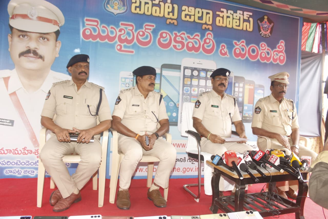 బాపట్ల జిల్లా పోలీస్ ప్రధాన కార్యాలయం, రికవరీ చేయబడిన సుమారు రూ.74,60,000/- విలువ గల 373 మొబైల్ ఫోన్ లోను బాధితులకు అందజేసిన జిల్లా ఎస్పీ శ్రీ బి.ఉమామహేశ్వర్ ఐపీఎస్ గారు