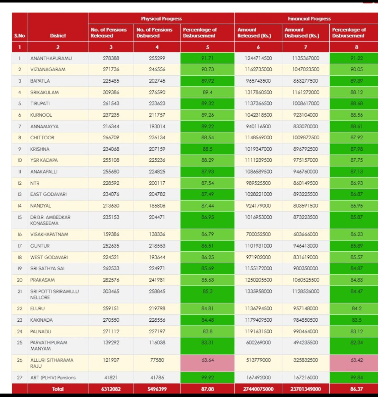 రేపు సెలవు కావటంతో, ఒక్క రోజు ముందే ఎన్టీఆర్ భరోసా పెన్షన్ల పంపిణీ. ఉదయం నుంచి జరుగుతున్న పెన్షన్ల పంపిణీ. 12 గంటలకు 87% మందికి పెన్షన్ల పంపిణీ పూర్తి. 63.12 లక్షలమందికి పింఛన్ల కోసం రూ.2,743 కోట్లు విడుదల చేసిన ప్రభుత్వం.