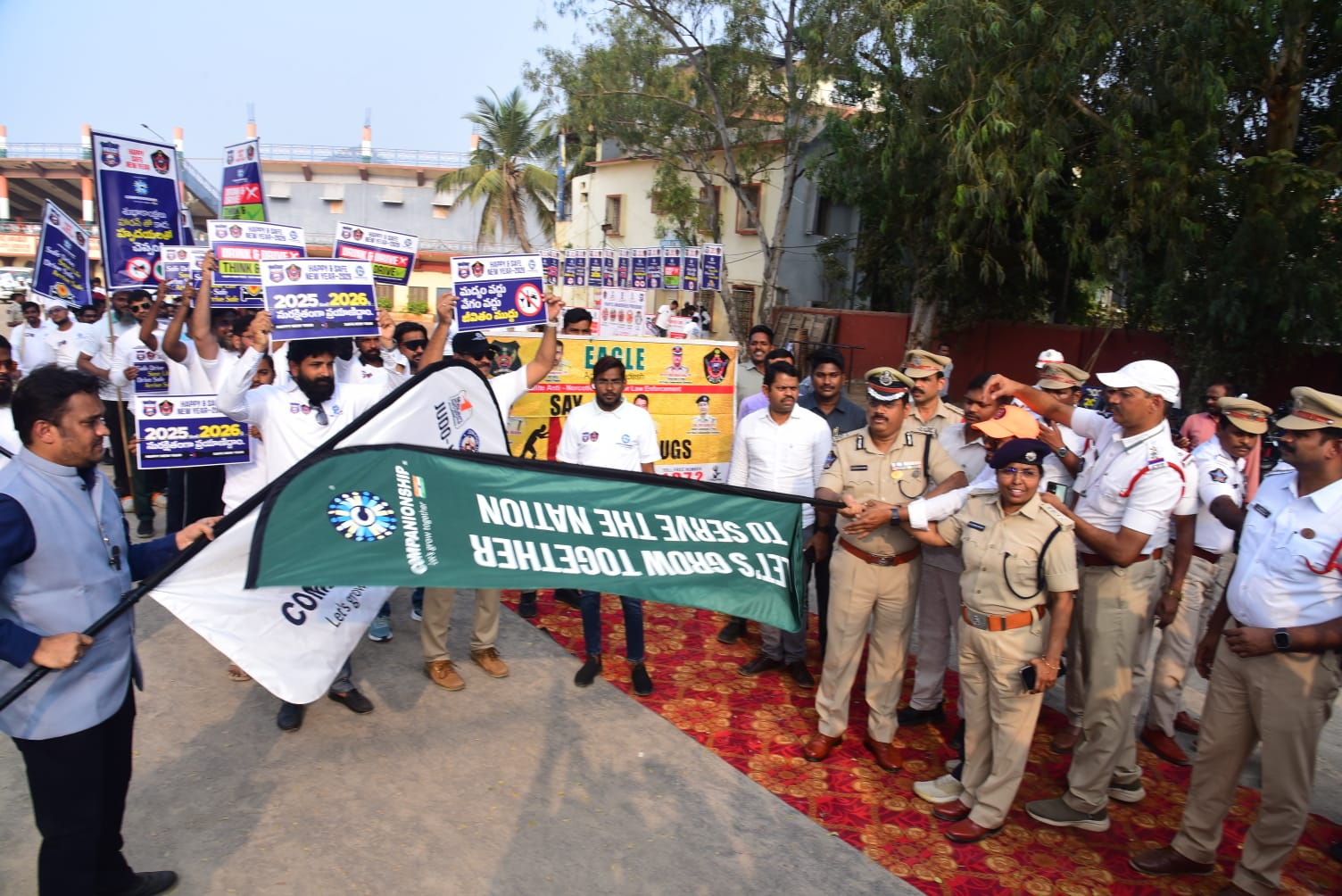 ఈ కార్యక్రమం లో గౌరవ నగర పోలీస్ కమీషనర్ శ్రీ ఎస్.వి.రాజ శేఖర బాబు ఐ.పి.ఎస్. గారు డ్రగ్స్ వద్దుబ్రో, సే నో టూ డ్రగ్స్ అనే Eagle పోస్టర్లు విడుదల చేసారు. నగర కమిషనర్ గారు మాట్లాడుతూ మద్యం, డ్రగ్స్ సేవించి వాహనాలు నడపటం చట్టప్రకారం నేరం కావున ఇటువంటి వాటికి ఎవరైనా పాల్పడితే చట్టప్రకారం కఠినంగా శిక్షిస్తాము. అదేవిదంగా న్యూ ఇయర్ సెలబ్రేషన్స్ లో భాగంగా ఏవైనా గంజాయి, డ్రగ్స్ త్రాగటం వంటివి చేస్తే NDPS Act ప్రకారం కఠినంగా శిక్సిస్తాము అని హెచ్చరించారు. ఈ కార్యక్రమం లో విజయవాడ నగర కమిషనర్ శ్రీ ఎస్. వి. రాజశేఖర్ బాబు IPS గారు, నగర ట్రాఫిక్ DCP శ్రీమతి Shareen Begum, IPS గారు, ఈగల్ టీం సభ్యులు, ట్రాఫిక్ పోలీస్ లు, NGO సభ్యులు పాల్గొన్నారు.