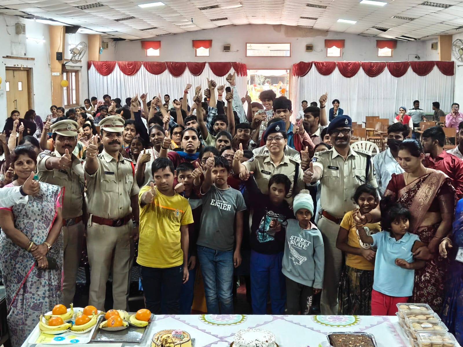 విద్యార్థులు మరియు నిర్వాహకులతో కలిసి డిసిపి కేక్ కట్ చేసి, పండ్లను పంపిణీ చేశారు.