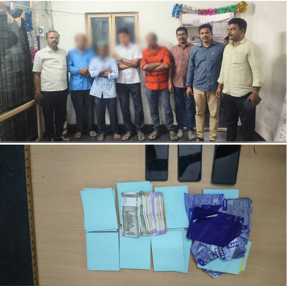 👉 లాలాపేట పోలీస్ స్టేషన్ పరిధిలోని ఏటుకూరు రోడ్డు నందు సింగిల్ నంబర్ ఆట ఆడుతున్నారని టాస్క్ ఫోర్స్ బృందం వారికి వచ్చిన సమాచారాన్ని SB CI గారికి తెలియపరచి, ఆయన ఆదేశాల మేరకు రైడ్ నిర్వహించి, సింగిల్ నంబర్ లాటరీ ఆడుతున్న నలుగురు వ్యక్తులను అదుపులోకి తీసుకుని వారి వద్ద ఉన్న 3 సెల్ ఫోన్లను, 19 లాటరీ పుస్తకాలను సీజ్ చేసి, రూ.5,110/- నగదును సీజ్ చేసి, తదుపరి విచారణ నిమిత్తం లాలాపేట పోలీస్ స్టేషన్ కు తరలించడం జరిగింది.