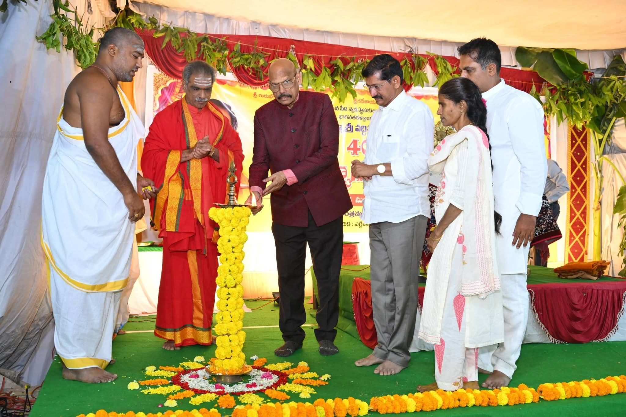 స్థానిక ఎగ్జిబిషన్ గ్రౌండ్ నందు ప్రముఖ ప్రవచనకర్త శ్రీ శ్రీ శ్రీ మద్దిపర్తి పద్మాకర్ గారి 403 వ శ్రీ మద్ భాగవత సప్తాహం కార్యక్రమానికి ఆయన ముఖ్యఅతిథిగా హాజరయ్యారు. ఈ సందర్భంగా టీజీ వెంకటేష్ మాట్లాడుతూ పిల్లలకు, యువతకు చిన్న వయసు నుంచే ఆధ్యాత్మిక చింతన ఆధ్యాత్మిక అలవాట్లు నేర్పించగలిగితే వారి భవిష్యత్తుకు బంగారు బాట వేసిన వారమవుతమన్నారు. ఎక్కువ చోట్ల ఆధ్యాత్మిక కార్యక్రమాలకు 60 ఏళ్లు పైబడిన వారు వస్తుంటారని అటువంటి వారి కన్నా యువత ఎక్కువగా ఇటువంటి ప్రవచనాలు వినడానికి వస్తే వారి జ్ఞానం పెంపొందించుకోవడానికి అవకాశం ఉంటుందన్నారు. పద్మాకర్ స్వామి వారు కర్నూలుకు రావడం కర్నూలు నేల అదృష్టమని, ఆయన శిష్యులు ఎంతోమంది శిధిలావస్థకు చేరుకున్న ఆలయాలను జీర్ణోదరణ చేశారన్నారు. అటువంటి కార్యక్రమం ఎవరు చేసినా తన వంతు సహకారం అందిస్తానని టీజీ తెలిపారు. పాడుబడిన ఆలయాలకు జీర్ణోదరణకు మనం 25 శాతం నిధులు పెడితే 75% నిధులను రాష్ట్ర ప్రభుత్వం విడుదల చేస్తుందని ఆయన తెలిపారు. మన ప్రాంతంలో ఎక్కడ జీర్ణోదరణకు అవసరమైన దేవాలయాలను గుర్తిస్తే మంత్రి భరత్ ద్వారా నిధులు విడుదల చేయిస్తానని టీజీ వెంకటేష్ తెలిపారు. అంతేకాకుండా శిధిలాలయాలకు సమకూర్చవలసిన 25 శాతం నిధులు కూడా తాము సొంతంగా భరిస్తామని ఆయన హామీ ఇచ్చారు. స్థానికంగా ఉండే ప్రజలు అటువంటి దేవాలయాలను గుర్తించి సరైన ప్రణాళిక తీసుకుని ముందుకు రావాలని ఆయన కోరారు. స్వామీజీ ప్రవచనాల కార్యక్రమానికి సంబంధించి ఎటువంటి పబ్లిసిటీ లేకపోయినా ఇంత మంది జనం రావడం ప్రజల్లో పెరుగుతున్న ఆధ్యాత్మిక చింతనకు నిదర్శనం అన్నారు. వారం రోజులపాటు జరుగనున్న ఈ కార్యక్రమాన్ని నగర ప్రజలందరూ సద్వినియోగం టీజీ వెంకటేష్ కోరారు. ఈ కార్యక్రమంలో ఎంపీ బస్తిపాటి నాగరాజు, డాక్టర్ వేణుగోపాల్, హరికృష్ణ రెడ్డి తదితరులు పాల్గొన్నారు.