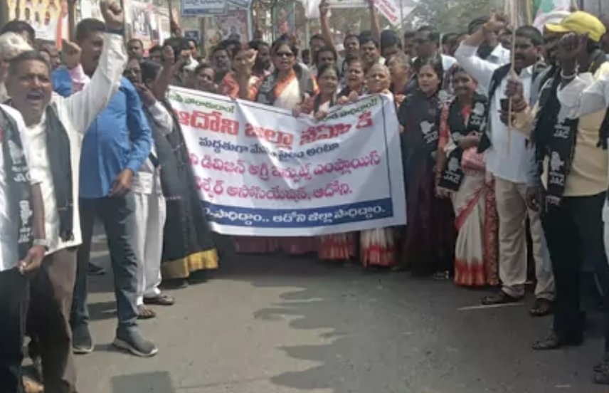 ఆదోని జిల్లా సాధన కోసం జేఏసీ ఆధ్వర్యంలో ఆదివారం మహా పాదయాత్ర చేపట్టారు. ఆదోని మున్సిపల్ కార్యాలయం నుంచి ప్రారంభమైన ఈ మహా పాదయాత్ర.. యువగళం పాదయాత్ర ముగిసిన పైలాన్ వరకు సాగింది.