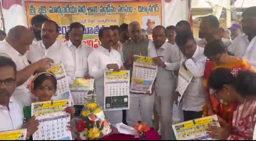 మేడ్చల్ మల్కాజిగిరి జిల్లా :  చిల్కనగర్ డివిజన్ శ్రీ భక్త మార్కండేయ పద్మశాలి సంక్షేమ సంఘం క్యాలెండర్ ఆవిష్కరణ కార్యక్రమానికి ముఖ్యఅతిథిగా హాజరైన మల్కాజ్గిరి పార్లమెంట్ సభ్యులు, ఈటల రాజేందర్ తో పాటు, శాసనసభ మాజీ సభ్యులు బేతి సుభాష్ రెడ్డి, MBC కార్పొరేషన్ మాజీ ఛైర్మెన్ తడూరి శ్రీనివాస్.పాల్గొన్నారు.