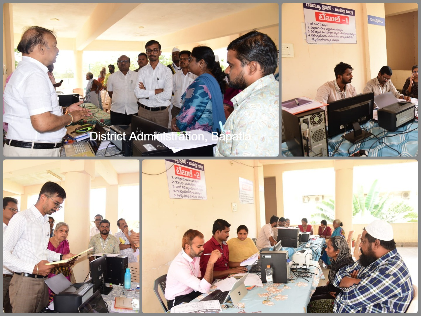 బాపట్ల: రెవెన్యూ సమస్యల పరిష్కారానికి జిల్లావ్యాప్తంగా రెవెన్యూ క్లినిక్లను సమర్థవంతంగా నిర్వహించాలని జిల్లా కలెక్టర్ డా|| వి. వినోద్ కుమార్, ఐ.ఏ.ఎస్ గారు ఆదేశించారు. సోమవారం కలెక్టరేట్లో ఏర్పాటు చేసిన రెవెన్యూ క్లినిక్ శిబిరాలను ఆయన పరిశీలించి, ప్రజల నుంచి వచ్చిన అర్జీలను క్షుణ్ణంగా పరిశీలించి త్వరితగతిన పరిష్కరించాలని సూచించారు. ప్రతి సోమవారం ఆర్డీఓలు గ్రామాలకు వెళ్లి రెవెన్యూ క్లినిక్లు నిర్వహించాలని తెలిపారు. ప్రజల రెవెన్యూ సమస్యలు పూర్తిగా పరిష్కరించడమే ప్రభుత్వ లక్ష్యమని, ఈ అవకాశాన్ని ప్రజలు సద్వినియోగం చేసుకోవాలని కలెక్టర్ కోరారు.