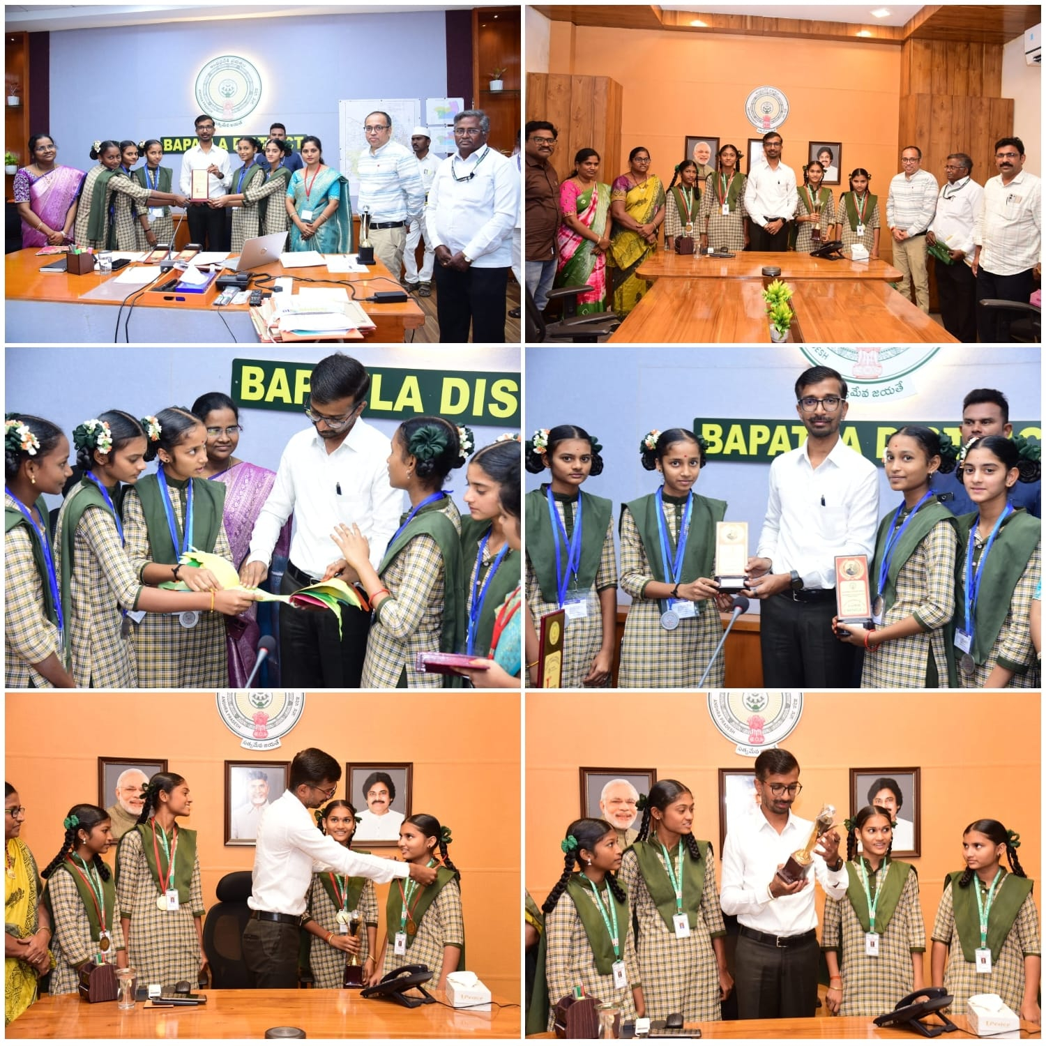 బాపట్ల: బుధవారం ఉదయం స్థానిక జిల్లా కలెక్టరేట్ నందు డిఇఓ శ్రీనివాస్ తో కలసి విద్యార్థులు జిల్లా కలెక్టర్ ను మర్యాదపూర్వకంగా కలిశారు.