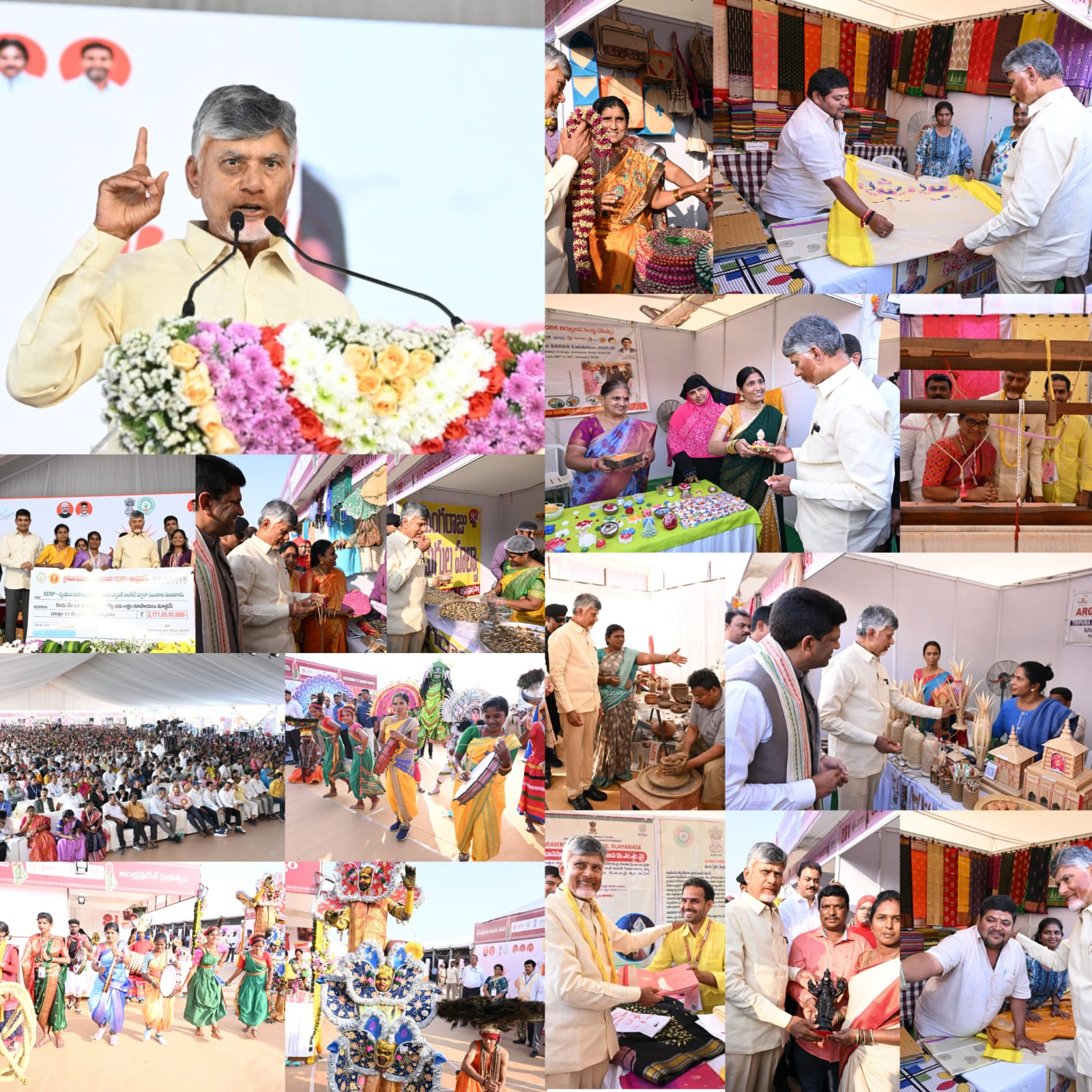 ముఖ్యమంత్రి అంటే పెత్తందారు కాదు. ప్రజా సేవకుడు. కూటమి ప్రభుత్వం సంక్షేమం, అభివృద్ధి లక్ష్యంగా పనిచేస్తోంది. తల్లికి వందనం కింద ఏడాదికి రూ.10,090 కోట్లు 67 లక్షల మంది విద్యార్ధుల తల్లుల ఖాతాలో జమ చేస్తున్నాం. ఆడబిడ్డలకు ఉచిత బస్సు ప్రయాణ సౌకర్యం కోసం స్త్రీ శక్తి పథకం తీసుకువచ్చాం. దీపం పథకం కింద ఏడాదికి మూడు గ్యాస్ సిలిండర్ల ఉచితంగా అందిస్తున్నాం. వాట్సాప్ గవర్నెన్స్ ద్వారా పౌరుల వద్దకే ప్రభుత్వ సేవలు అందేలా చర్యలు తీసుకుంటున్నాం. సంజీవని కార్యక్రమం ద్వారా ఐదు కోట్ల ప్రజల ఆరోగ్యానికి భరోసా కల్పిస్తున్నాం. పేదరికం లేని రాష్ట్రం లక్ష్యంగా ముందుకు వెళుతున్నామని సీఎం చంద్రబాబు స్పష్టం చేశారు. అంతకుముందు స్త్రీ నిధి పథకం కింద డ్వాక్రా సంఘాలకు రుణంగా రూ.1,375 కోట్ల చెక్కును సీఎం అందించారు. సెర్ప్ నుంచి రూ.2171 కోట్లను పొదుపు సంఘాలకు రుణంగా అందించారు. చేనేత వస్త్ర స్టాళ్లను పరిశీలించిన అనంతరం ముఖ్యమంత్రి తన సతీమణి భువనేశ్వరికి చీరను కొనుగోలు చేశారు. భర్తకు ఆరోగ్యం బాగోలేదని తన దృష్టికి తీసుకొచ్చిన పొదుపు మహిళకు సీఎం సహాయ నిధి నుంచి రూ.6 లక్షలు ముఖ్యమంత్రి చంద్రబాబు మంజూరు చేశారు.