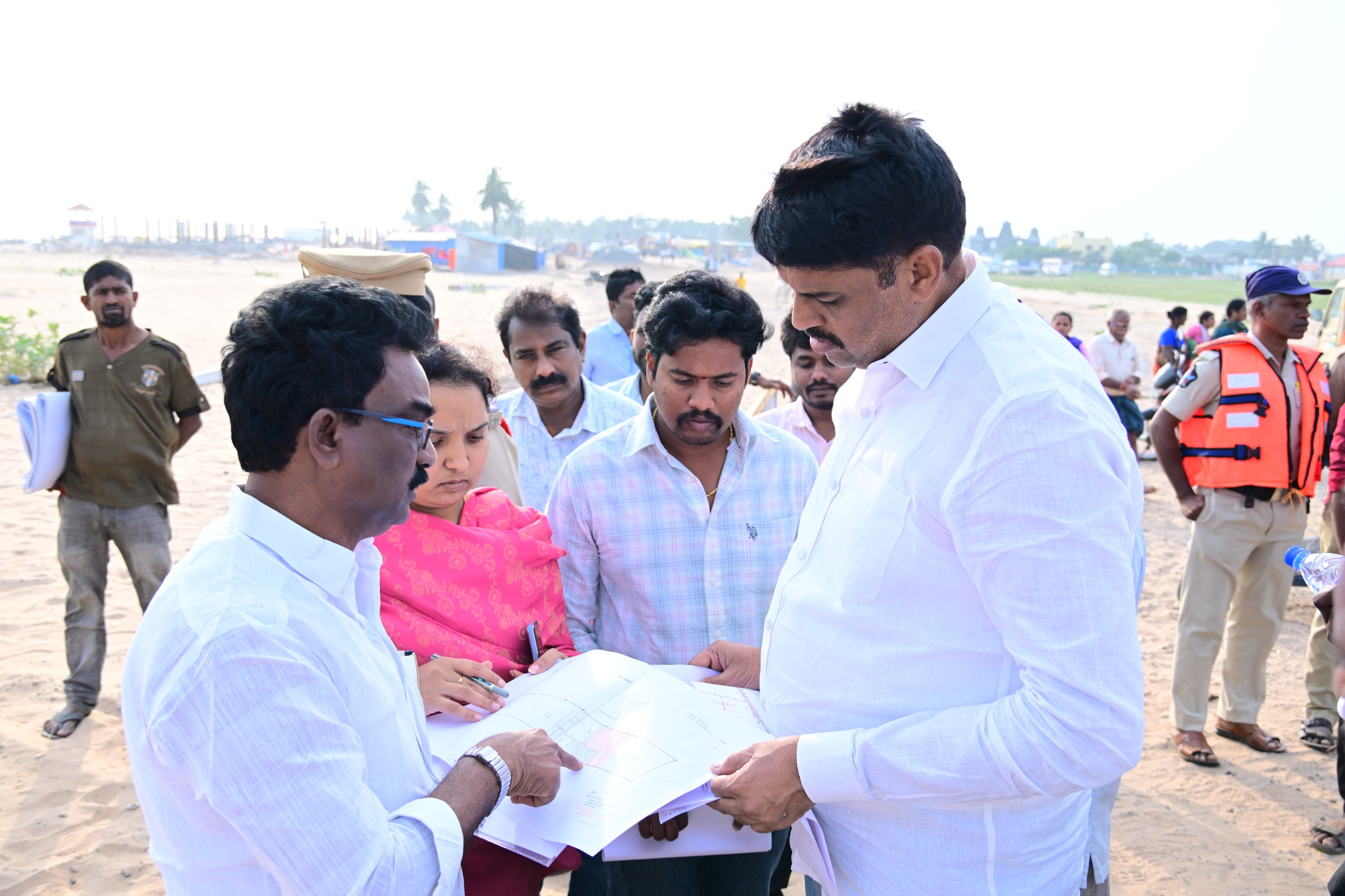 బాపట్ల మండలం సూర్యలంక సముద్ర ప్రాంతంలో అభివృద్ధి పనుల పురోగతిని బాపట్ల నియోజకవర్గ ఎమ్మెల్యే శ్రీ వేగేశన నరేంద్ర వర్మ రాజు గారు పరిశీలించారు