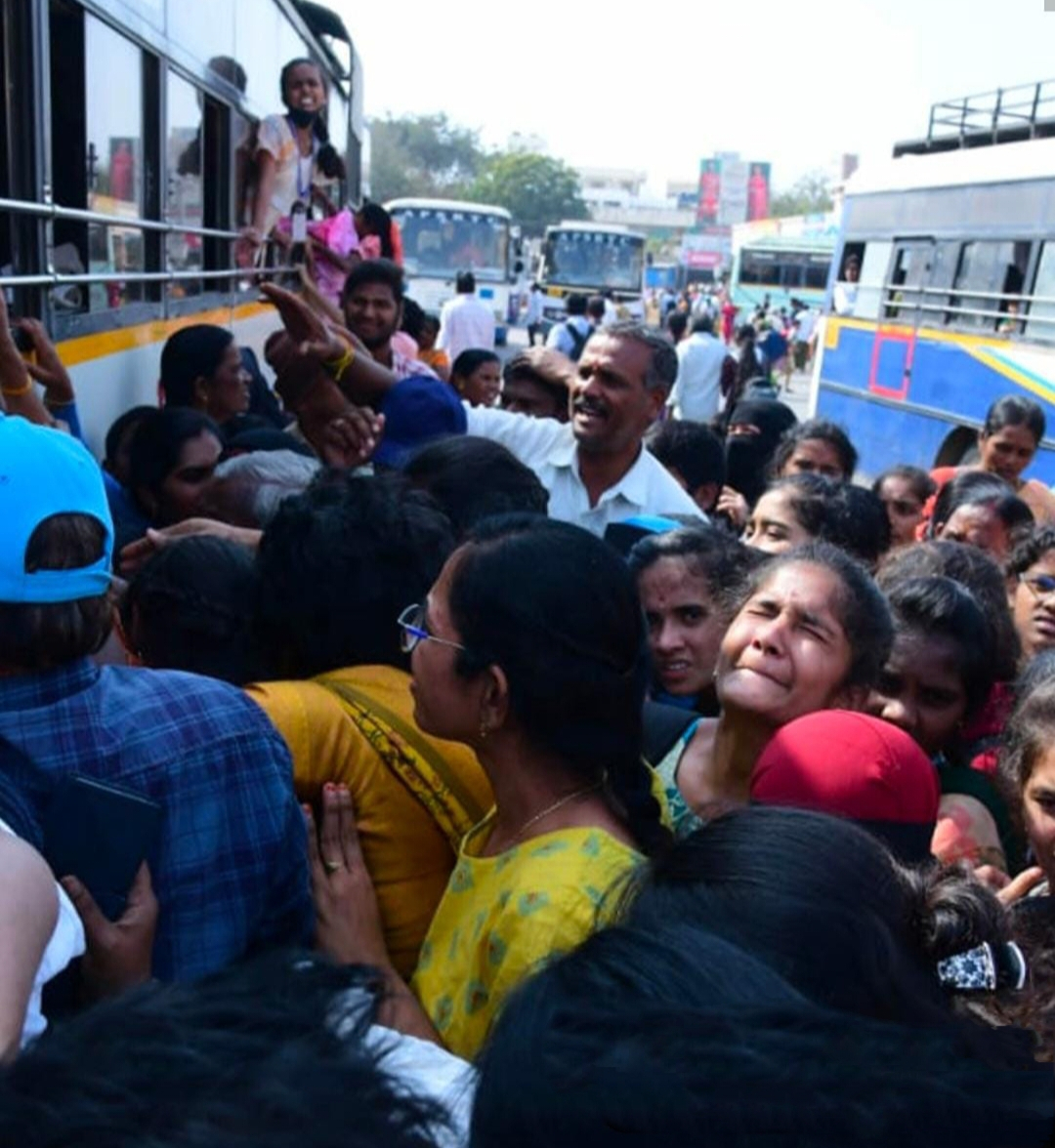 వచ్చిపోయే బస్సుల కోసం ప్రయాణికులు పరుగులు తీయడం, సీట్ల కోసం కుస్తీలు పడడం వంటి దృశ్యాలు కనిపించాయి. కాలేజీలకు, హాస్టళ్లకు, స్కూళ్లకు శనివారం నుంచి సెలవులు ప్రకటించడంతో ప్రయాణికుల రద్దీ పెరిగింది. మహాలక్ష్మి పథకం ప్రవేశ పెట్టిన నాటి నుంచి ఆయా రూట్లలో బస్సుల సంఖ్య తగ్గించడం వల్ల ప్రయాణీ కులు తిప్పలు పడాల్సిన దుస్థితి ఏర్పడుతోంది.