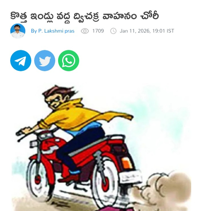 అన్నమయ్య జిల్లా, పుంగనూరు నియోజకవర్గంలోని పుంగనూరు పట్టణంలో కొత్త ఇండ్ల టీవీఎస్ షోరూమ్ వద్ద ఎన్. కిషోర్కు చెందిన టీవీఎస్ జూపిటర్ ద్విచక్ర వాహనం (ఏపీ 40 జే ఏ 0983) గుర్తుతెలియని వ్యక్తులు చోరీ చేశారు. ఈ ఘటనపై కిషోర్ ఫిర్యాదు మేరకు హెడ్ కానిస్టేబుల్ వెంకటేశులు ఆదివారం కేసు నమోదు చేశారు. వాహనదారులు తమ వాహనాల పట్ల అప్రమత్తంగా ఉండాలని పోలీసులు సూచించారు# కొత్తూరు మురళి.