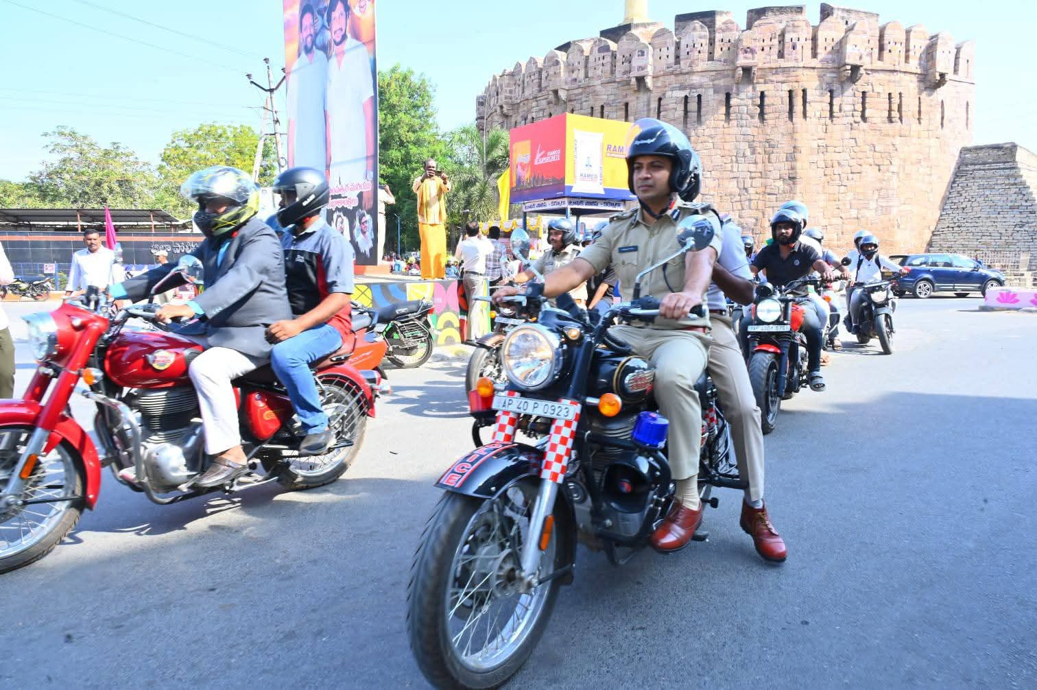 * హెల్మెట్ ధరించి  బైక్ ర్యాలీ లో పాల్గొన్న...  డిఐజి, జిల్లా ఇన్ చార్జ్ ఎస్పీ.