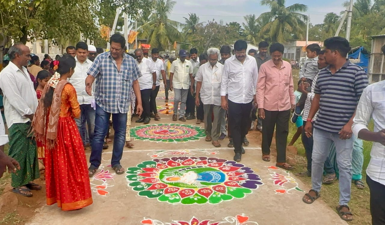 అనంతరం మండలంలోని పేంజెండ్ర గ్రామంలో రూ.19 లక్షలతో నిర్మాణం పూర్తి చేసుకున్న సిసి రోడ్డును ప్రారంభించి.... గ్రామంలో నిర్వహించిన సంక్రాంతి సంబరాల్లో భాగంగా జరిగిన ముగ్గులు పోటీల్లో విజేతలకు బహుమతులను అందించారు.