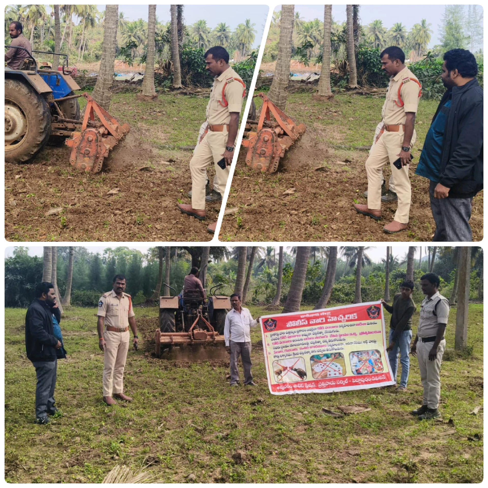 శ్రీ కాకినాడ జిల్లా ఎస్పీ శ్రీ జి బిందు మాధవ్ ఐపీఎస్ గారు ఉత్తరుల మేరకు పెద్దాపురం సబ్ డివిజనల్ పోలీస్ ఆఫీసర్ శ్రీ డి శ్రీహరి రాజు గారు మరియు ప్రత్తిపాడు సర్కిల్ ఇన్స్పెక్టర్ శ్రీ బి సూర్య అప్పారావు గారి సూచనలు మేరకు అన్నవరం పోలీస్ స్టేషన్ పరిధిలో విస్తృత తనిఖీలు నిర్వహించి కోడిపందాలకు తయారుచేసిన బరులను డిప్యూటీ తాసిల్దారు గారు మరియు అన్నవరం ఎస్ఐ గారు జాయింట్ గా సందర్శించి, సదరు గ్రామాల్లో తయారు చేసిన బరులను ట్రాక్టర్ తో దున్నించి ధ్వంసం చేసి మరియు వేసిన షామియానా టెంట్లను తొలగించడం జరిగింది..