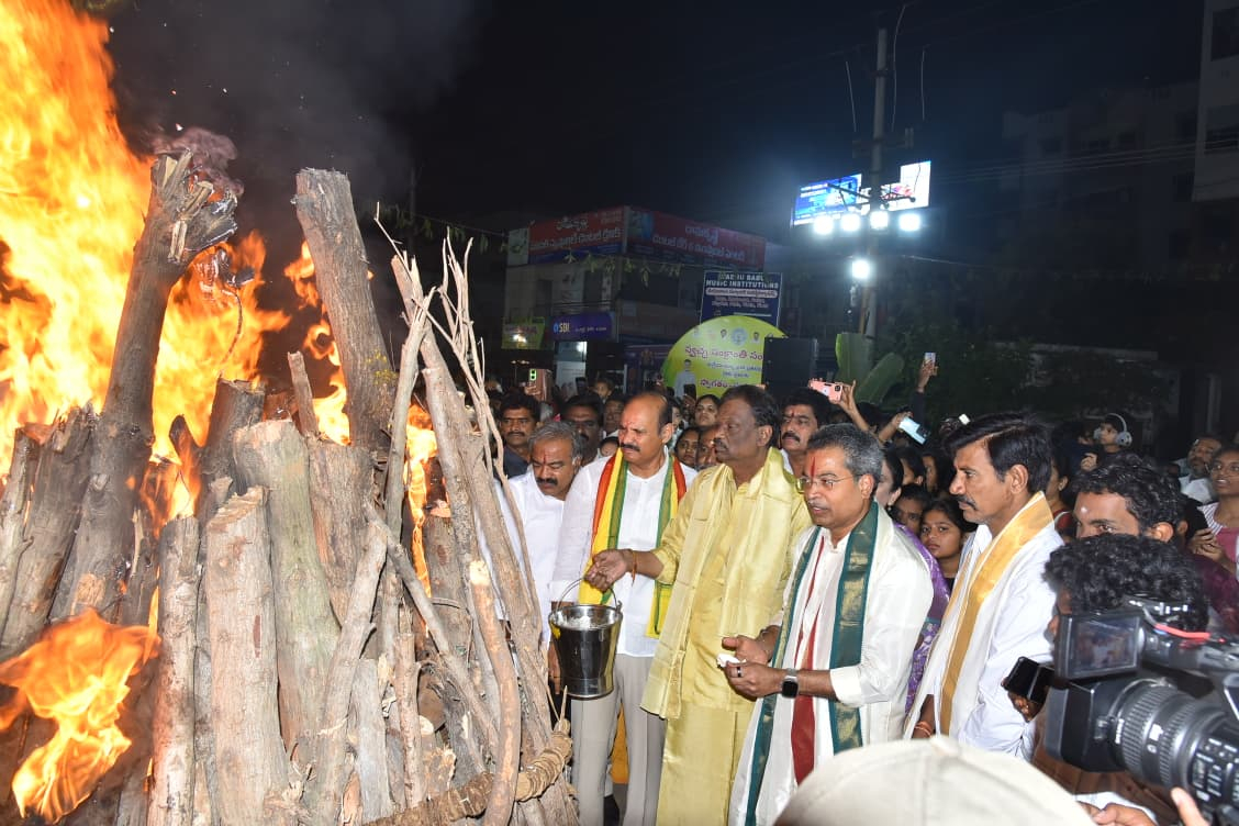 ముందుగా గొల్లపూడి వన్ టౌన్ సెంటర్ లో మంత్రి కొలుసు పార్థసారథి, ఎమ్మెల్యే వసంత కృష్ణ ప్రసాద్ లు కలిసి సంప్రదాయబద్ధంగా భోగి మంటలను వెలిగించారు.