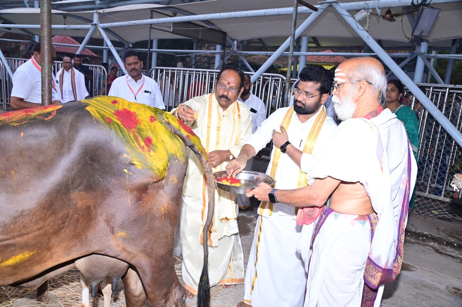 శాస్త్రోక్త నిర్వహణ: ఆలయ స్థానాచార్యులు శ్రీ శివప్రసాద్ శర్మ గారి పర్యవేక్షణలో వేద పండితులు శాస్త్రోక్తంగా, సంప్రదాయబద్ధంగా గోపూజను నిర్వహించారు. గోమాతకు పసుపు, కుంకుమలతో అలంకరించి, ధూపదీప నైవేద్యాలను సమర్పించారు.