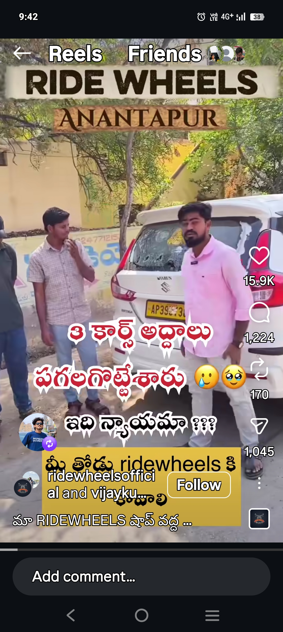 అనంత: పండుగ వేళా రైడ్ వీల్స్ అద్దె వాహనాల అద్దాలు పగలగొట్టారు.దుండగులు 3 వాహన అడ్డాలు పండగవేళ రైడ్ వీల్స్ నడిపే వ్యక్తి కి నష్టాన్ని కలిగించారు.అలా చెయ్యటం దారుణం కష్టపడి పైకి వస్తున్న వారి పై కక్ష సాధించటం చాలా బాధకరం దీన్ని ఎవరు చేసారు అనేధి తెలియాల్సి ఉంటుంది