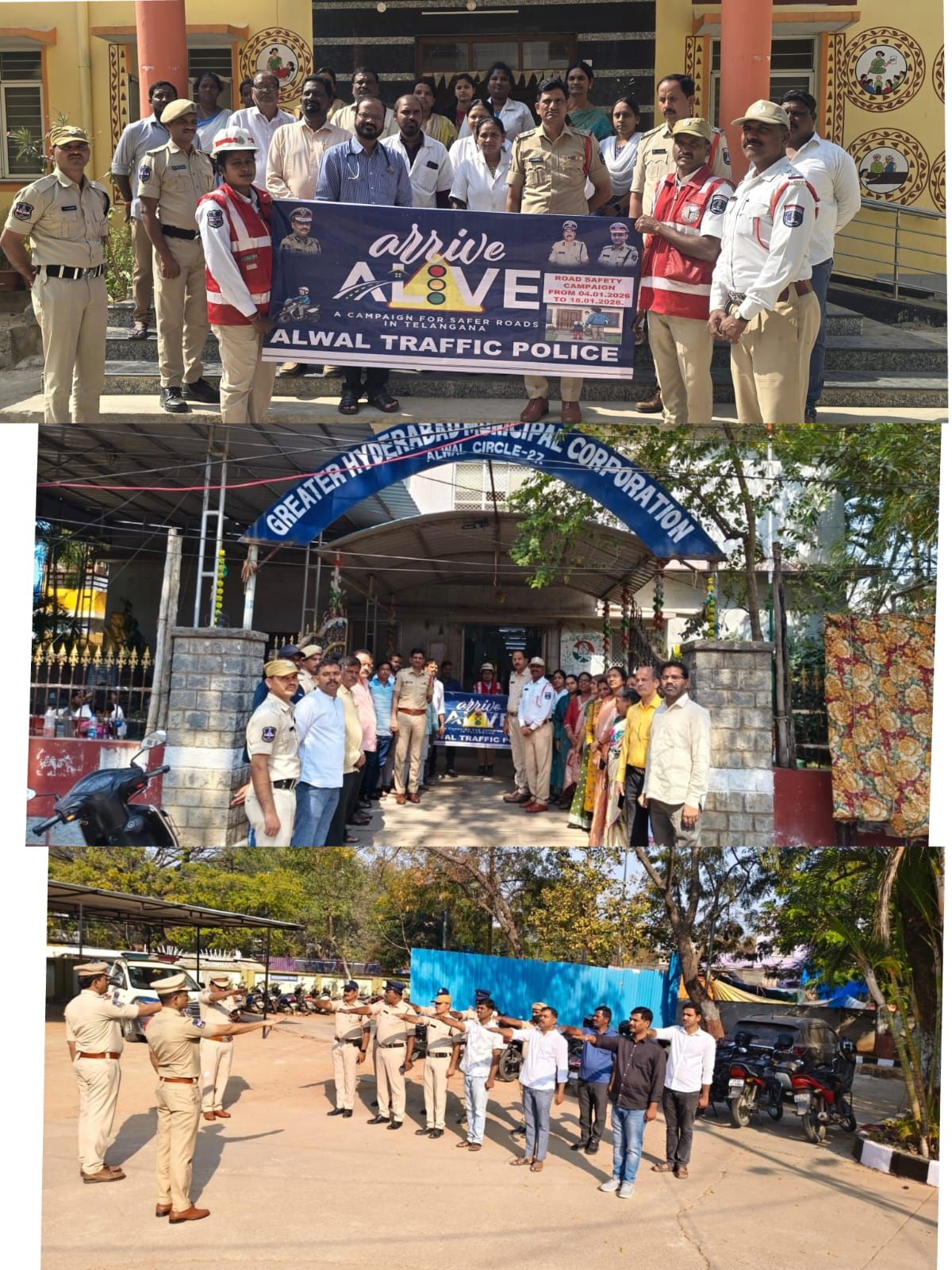 అల్వాల్ లాఅండ్ ఆర్డర్ (L&O) పోలీసు మరియు ట్రాఫిక్ విభాగాల ఆధ్వర్యంలో ఉమ్మడిగా జరిగిన ఈ కార్యక్రమం.. అల్వాల్ పోలీస్ స్టేషన్, జిహెచ్ఎంసి సర్కిల్ కార్యాలయం,  మరియు ప్రభుత్వ ఆసుపత్రి ప్రాంగణాల్లో జరిగింది.