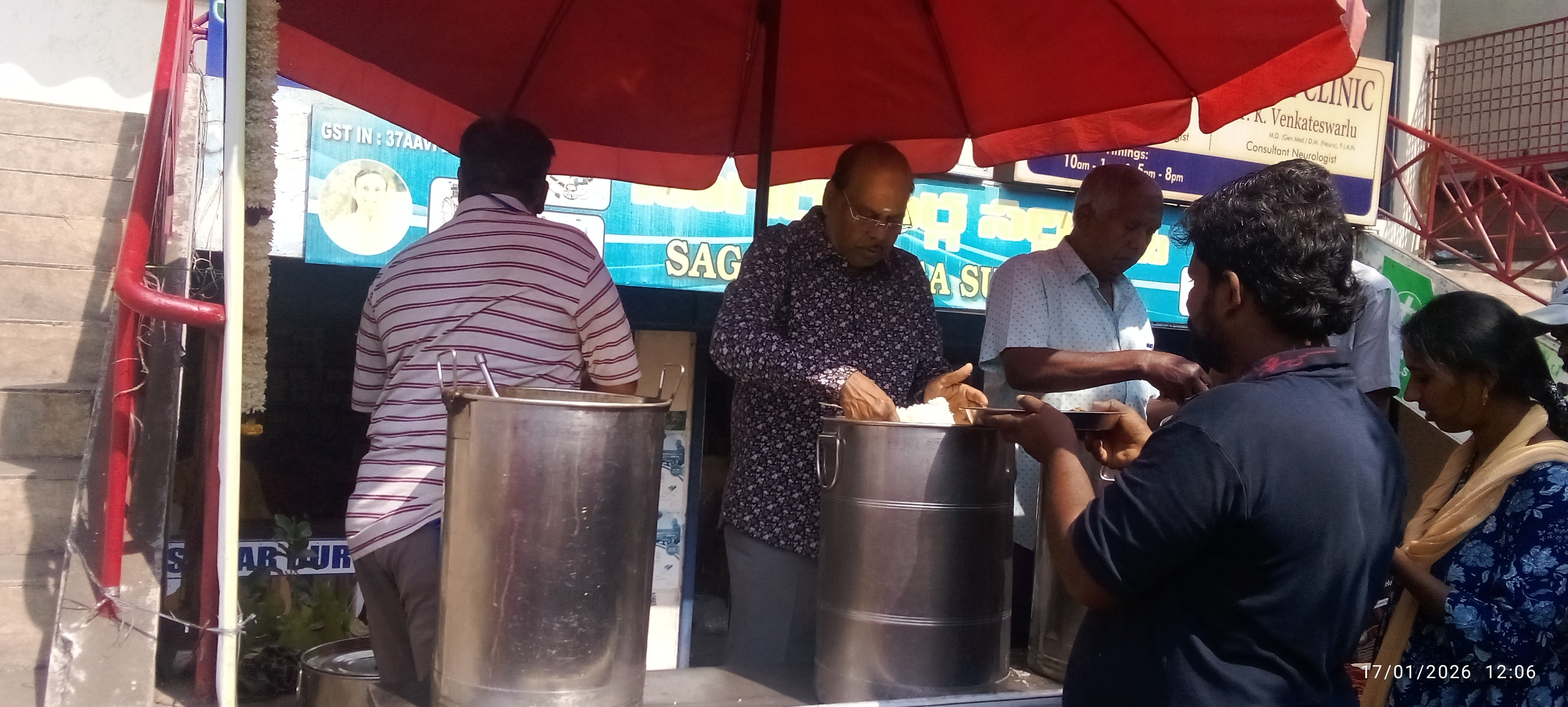 శ్రీసత్య సాయి సోషియల్ వెల్ఫేర్ ట్రస్ట్ వారు విశాఖ కేజీ హేచ్ ఆసుపత్రి ఎదుట ప్రతి రోజూ మధ్యాహ్నం పన్నెండు గంటలకు ఆకలి గొన్న వారికి ఉచిత భోజనం అందిస్తున్నామని ట్రస్ట్ సభ్యుడు శ్రీకాంత్ తెలిపారు. వారు భారత్ ఆ వాజ్ తో మాట్లాడుతూ శ్రీ సత్య సాయి జిల్లా పుట్టపర్తి యందు వున్న శ్రీ సాయిబాబా పేరు మీద మేము దైవత్మ. అన్నదానం. ఆరోగ్యం. చదువులు. ఆశ్రమ. వంటి సేవలు. గోపాల పట్నం చంద్రా కొలనీ లో అనాధులకు. దిక్కు లేని వారికి ఆశ్రమ నిర్వ హిస్తు మరియు యం. వి. పి కాలనిలో ఆసుపత్రి స్థాపించి అందులో ఉచితంగా రో గులకు . రక్త పరీక్షలు. వివిధ జబ్బులకు చికిత్స చేసి మందులు ప్రతిరోజూ ఇస్తూ న్నా మని. విశాఖలో ప్రజలు. పొరుగు జిల్లాల ప్రజలు మా సేవలు విని యో గించు కొంటున్నా రని చెప్పారు