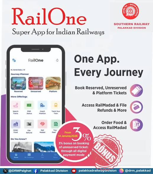 అన్ని రకాల టికెట్లపై డిస్కౌంట్... యూటీఎస్ యాప్‌లో కేవలం అన్ రిజర్వ్‌డ్ టికెట్లు జారీ చేసేవారు. అలాగే వాలెట్ డబ్బుతో బుక్ చేసే అన్ రిజర్వ్‌డ్ టికెట్లపై మాత్రమే 3 శాతం రిబేటు లభించేది. ప్రస్తుతం రైల్ వన్ యాప్ ద్వారా అన్ రిజర్వ్‌డ్ తో పాటు రిజర్వ్‌డ్ టికెట్లపై కూడా 3 శాతం రిబేటు ఇవ్వడానికి రైల్వే శాఖ అంగీకారం తెలిపింది. రైల్వే శాఖ టికెట్లు జారీ చేసే కమర్షియల్ శాఖ సిబ్బందిని, కౌంటర్లు, టికెట్ బుకింగ్ కౌంటర్లను తగ్గించే లక్ష్యంతో దశాబ్దం కిందట యూటీఎస్ యాప్‌ను రైల్వే శాఖ ప్రవేశపెట్టింది. కేవలం ఈ యాప్ అన్ రిజర్వ్‌డ్ టికెట్లకే పరిమితం కావడంతో ప్రయాణికులు రిజర్వుడు టికెట్ల కోసం ఆయా రైల్వే స్టేషన్లలోని పీఆర్‌ఎస్ కౌంటర్లకు రావడమే కాకుండా ఐఆర్‌సీటీసీ, ఇతర ప్రైవేటు ఆన్‌లైన్ యాప్‌ల ద్వారా టికెట్లను బుక్ చేసుకోవడం వంటివి చేసేవారు. దీనిని అధిగమిస్తూ రైల్వే శాఖ సరికొత్తగా రైల్ వన్ యాప్‌ను డిజైన్ చేసింది. ఇతర సేవలను కూడా దీని ద్వారా ప్రయాణికులకు అందించి ఆదరణ పొందే యత్నంలో భాగంగానే రైల్ వన్ యాప్ ద్వారా అన్ని రకాల టికెట్ల బుకింగ్ పై 3 శాతం డిస్కౌంట్ ప్రకటించింది.