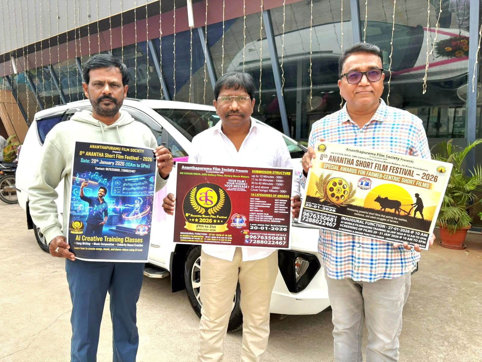 అనంతపురం ఫిల్మ్ సొసైటీ ఆధ్వర్యంలో జరిగే " 𝟴𝘁𝗵 𝗦𝗛𝗢𝗥𝗧 𝗙𝗜𝗟𝗠 𝗙𝗘𝗦𝗧𝗜𝗩𝗔𝗟 " పోస్టర్ ను ఈ రోజు ఆవిష్కరించడం జరిగింది. ఈ నెల 27 నుండి 31 వరకు జరిగే ఈ షార్ట్ ఫిల్మ్ ఫెస్టివల్ లో పాల్గొనే వారు తాము తీసిన షార్ట్ ఫిలిమ్స్ తో 𝗔𝗻𝗮𝗻𝘁𝗵𝗮𝗽𝘂𝗿 𝗙𝗶𝗹𝗺 𝗦𝗼𝗰𝗶𝗲𝘁𝘆 అధ్యక్షులు రషీద్ గారిని సంప్రదించగలరు.