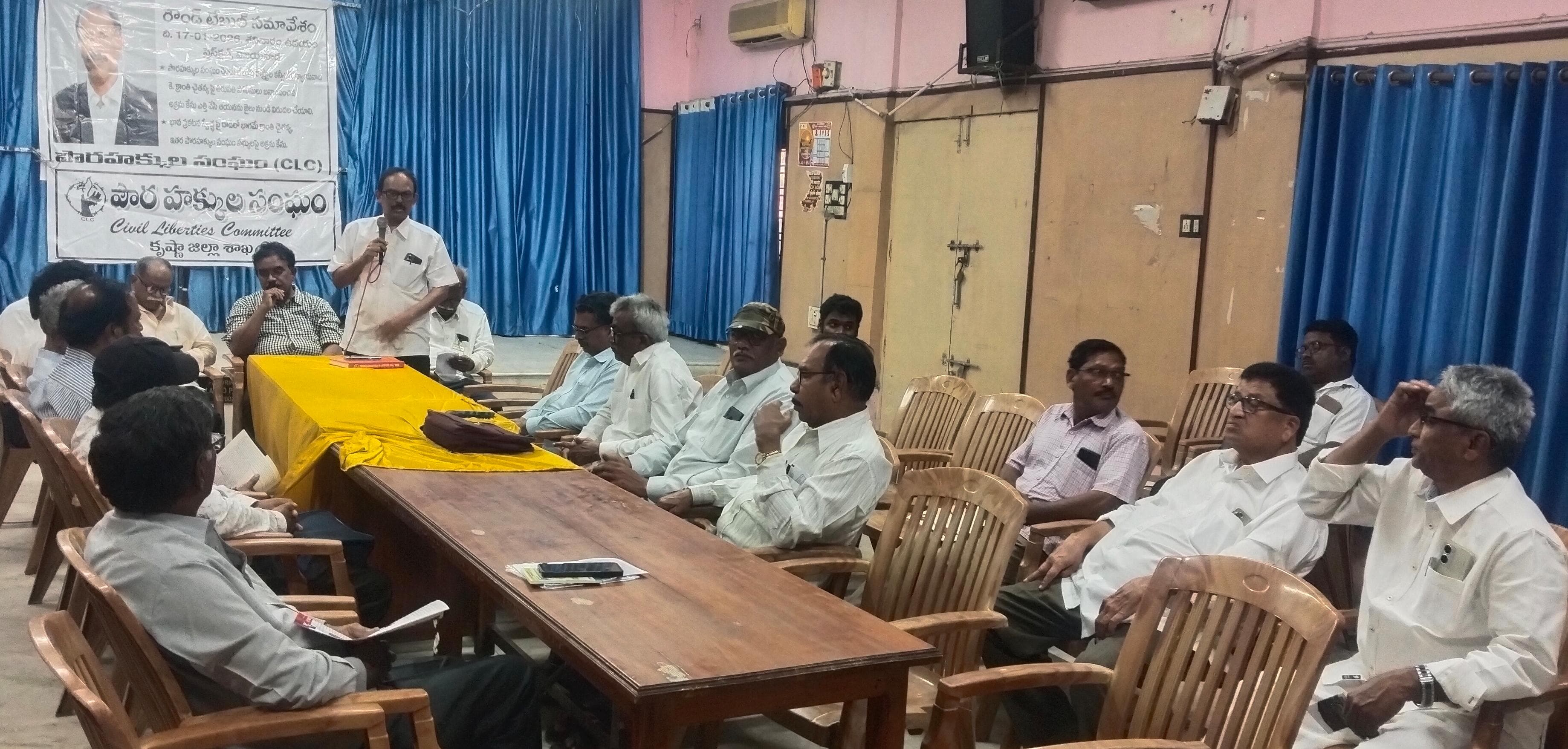 ...పౌరా పౌరాహక్కుల సంఘం రాష్ట్ర వైస్ ప్రెసిడెంట్ క్రాంతి చైతన్య అక్రమంగా నిర్భందాన్ని నిరసిస్తూ విజయవాడ ప్రెస్ క్లబ్ లో రౌండ్ టేబుల్ కాన్ఫరెన్స్.....పౌర హక్కుల సంఘం రాష్ట్ర వైస్ ప్రెసిడెంట్ క్రాంతి చైతన్య అరెస్ట్ చేయడం రాజ్యాంగం కల్పించిన బావ ప్రకటన స్వేచ్చాను హరించడమే అని పౌర హక్కుల సంఘం రాష్ట్ర ప్రధాన కార్యదర్శి చిలుక చంద్ర శేఖర్ అన్నారు,పౌరా హక్కుల సంఘం రౌండ్ టేబుల్ కాన్ఫరెన్స్ లో ఆయన మాట్లాడుతూ తిరుపతిలో పౌరా హక్కుల సంఘం రాష్ట్ర మహాసభలను విచ్చిన్నం చేయడానికి అరెస్ట్ చేసారన్నారు.ఫ్లెక్సీ లో ముద్రించన రాజకీయ కార్తున్ పేరు తో దేశద్రోహం కేసు పెట్టడం అనేది రాజ్యాంగం పౌరులకు కల్పించన ప్రాథమిక హక్కుల ఉల్లంగాన అని విమర్శించినారు.ఇంకా రౌండ్ కాన్ఫరెన్స్ లో వివిధ ప్రజాస్వామిక సంఘాల నాయకులు పాల్గున్నారు, వారు మాట్లాడుతూ కేంద్రం అధికారంలో వున్నా బీజేపీ ప్రభుత్వం, దేశం లౌకిక స్ఫూర్తికీవిరుద్ధంగా పరిపాలన చేస్తుందని, రాజ్యాంగం లో వున్నా, రాజ్యాంగం కల్పించిన నియమాలు, హక్కుల ఉల్లంగానా చేస్తుందని పేర్కున్నారు, అదేవిధంగా మత ఉన్మాదన్ని ప్రేరేపస్తున్నారు, ప్రశ్నించే వారిని, క్రూరంగా అణచి వేస్తున్నారు, మొత్తం రాజ్యాంగ సమస్తలని తమ గుప్పెట్లు పెట్టకున్నారు, మన రాష్ట్రా ప్రభుత్వం కిలు బొమ్మలాగా వ్యవహారిస్తుందన్నారు తక్షణమే క్రాంతి చైతన్య మీద పెట్టిన కేసు ఉపసంహారించు కోవాలని కోరారు. ఈ కార్యక్రమం లో పౌర హక్కుల సంఘం రాష్ట్ర సహాయ కార్యదర్శి. టీ. ఆంజనేయులు, ఇఫ్ట్ రాష్ట్ర బాద్యులు. కె. పోలారి, సిపిఐ నగర సహాయ కార్య దర్శి. విరభద్ర రావ్, కులానిర్ములాన పోరాట రాష్ట్ర కార్యదర్శి కృష్ణ, ప్రగతిశీల కార్మిక సమైక్య రాష్ట్ర కార్య దర్శి కొండారెడ్డి, బెజవాడ బార్ అసోసియేషన్ అధ్యక్షులు షేక్ బాషా, పిడిఎమ్ రాష్ట్ర బాద్యుడు యు. వెంకటేశ్వర్లు, అమరుల బంధుమిత్రు సంఘం అధ్యక్షులు అంజమ్మ, విరసం అధ్యక్షులు అరసవిల్లి కృష్ణ, కవి జర్నలిస్ట్ బంగారం. విల్సన్, ఫోన్ పి డి యస్ యు కార్యదర్శి రాజేష్ తదితరులు పాల్గున్నారు.
