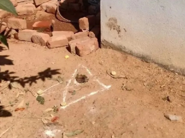 చౌడేపల్లి మండలం కాగతి ప్రాథమికోన్నత పాఠశాల ఆవరణంలో గుర్తు తెలియని వ్యక్తులు ముగ్గు వేసి, నిమ్మకాయలు, అక్షింతలతో తాంత్రిక పూజలు నిర్వహించారు. ఈ ఘటన మంగళవారం ఉదయం వెలుగులోకి రావడంతో ఉపాధ్యాయులు, విద్యార్థులు, స్థానికులు భయాందోళనకు గురయ్యారు. గతంలోనూ ఇలాంటి సంఘటనలు జరిగాయని ఉపాధ్యాయులు ఆవేదన వ్యక్తం చేశారు. ఈ విషయంపై చౌడేపల్లి పోలీసులకు ఫిర్యాదు చేశారు# కొత్తూరు మురళి.