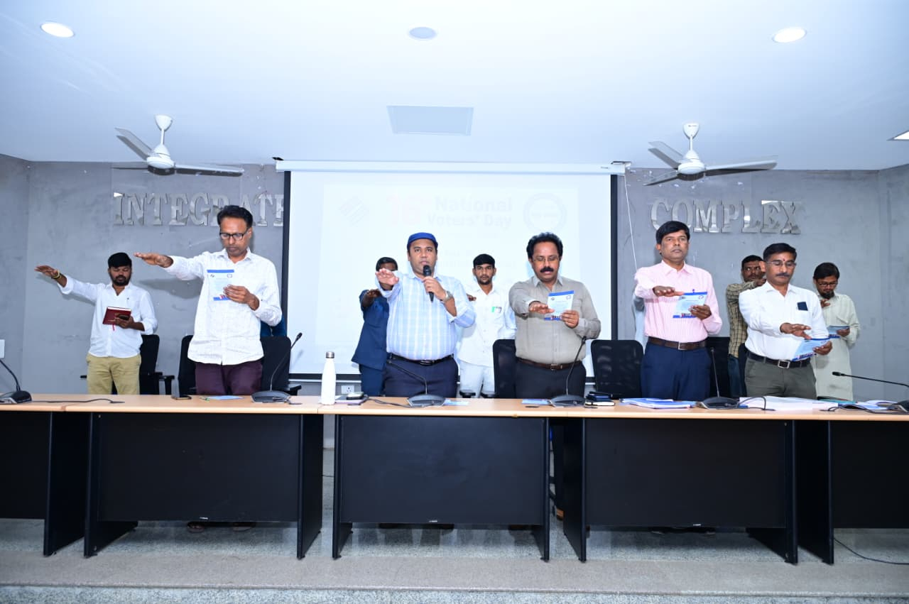 ఎన్నికలలో తప్పనిసరిగా ఓటు హక్కు వినియోగించుకునే విధంగా ఓటరు దినోత్సవ నినాదాన్ని ప్రతిబింబించేలా కార్యక్రమాలు చేపట్టడం జరుగుతుందని తెలిపారు.అన్ని ప్రభుత్వ కార్యాలయాలు, ప్రభుత్వ, ప్రైవేట్ విద్యా సంస్థలలో ఓటరు ప్రతిజ్ఞ చేయాలని సంబంధిత ఫోటోలు, వీడియోలను ఆయా శాఖల సోషల్ మీడియా ఖాతాలలో అప్ లోడ్ చేయాలని ఆదేశించారు.ఓటరు ప్రతిజ్ఞ వాట్సాప్ గ్రూపుల ద్వారా అందరికీ చేరే విధంగా చర్యలు తీసుకోవడం జరుగుతుందని తెలిపారు.అనంతరం ఓటరు నమోదు ప్రతిజ్ఞ చేశారు.
