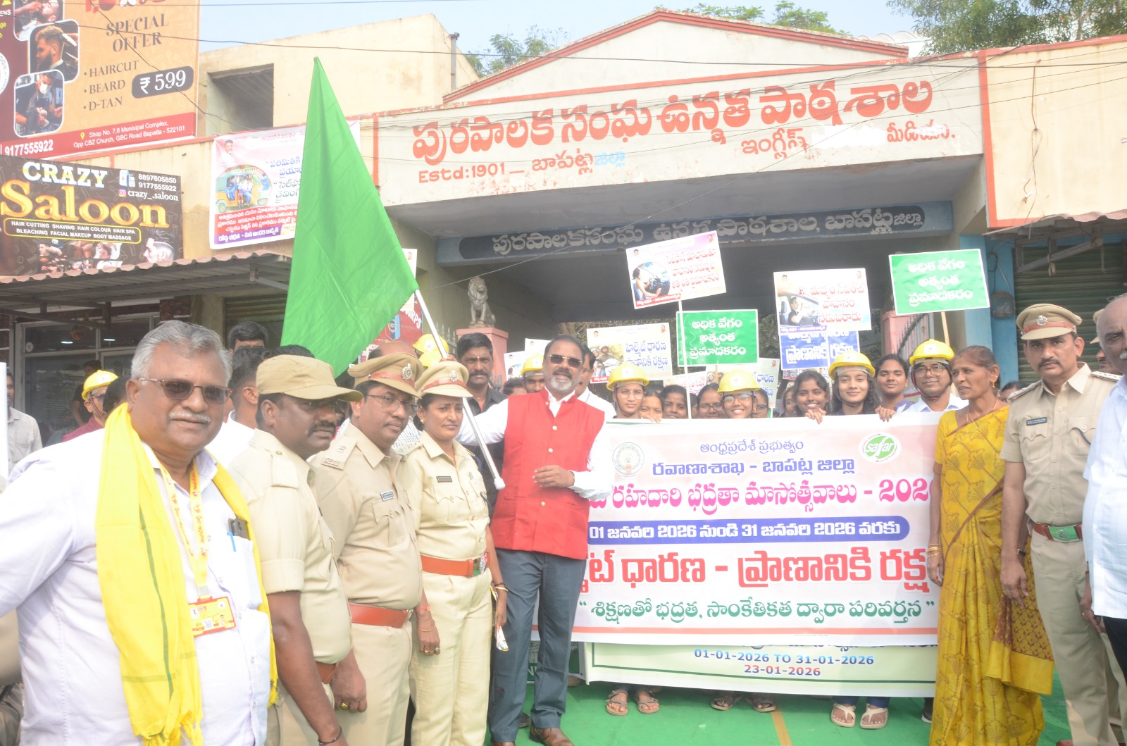 బాపట్ల: ప్రతి ఒక్కరూ రహదారి నిబంధనలు పాటించాలి బాపట్ల ఎంపీ తెన్నేటి కృష్ణప్రసాద్ గారు. బాపట్ల మున్సిపల్ హైస్కూల్ నుండి పాత బస్టాండ్ వరకు ఘనంగా రహదారి భద్రతా అవగాహన ర్యాలీ