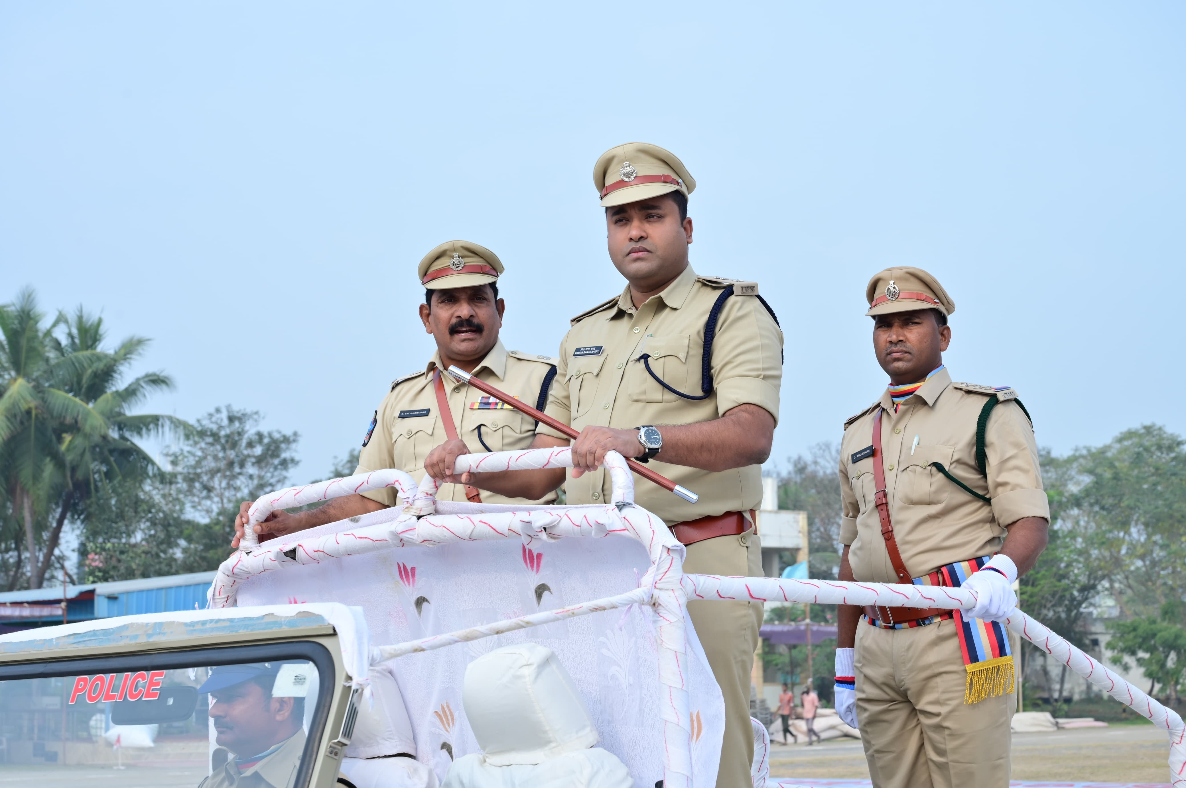 🔹పెరేడ్ కమాండర్ గా అడ్మిన్ ఆర్.ఐ రాఘవయ్య గారు వ్యవహరించారు. ముందుగా ఎస్పీ గారు గౌరవ వందనం స్వీకరించి, జాతీయ పతాకం ఎగుర వేశారు. తరువాత పరేడ్ పరిశీలన వాహనంలో వెళ్లి పోలీసు బలగాల పరేడ్ ను స్వయంగా పరిశీలించారు.